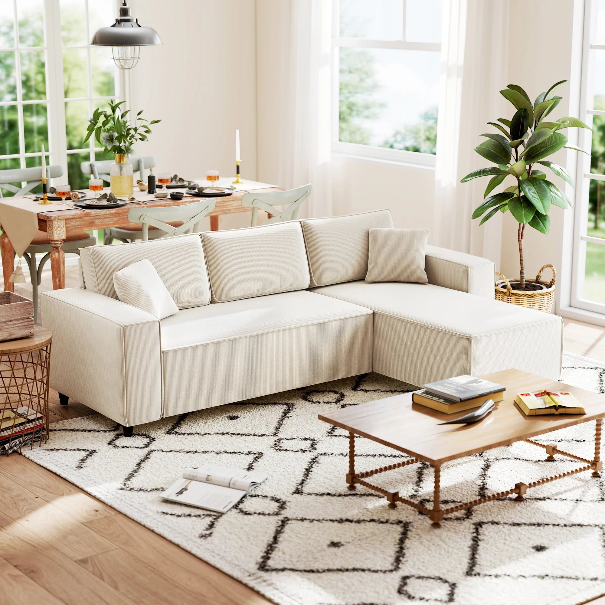 Canapé sectionnel avec méridienne convertible, blanc crème