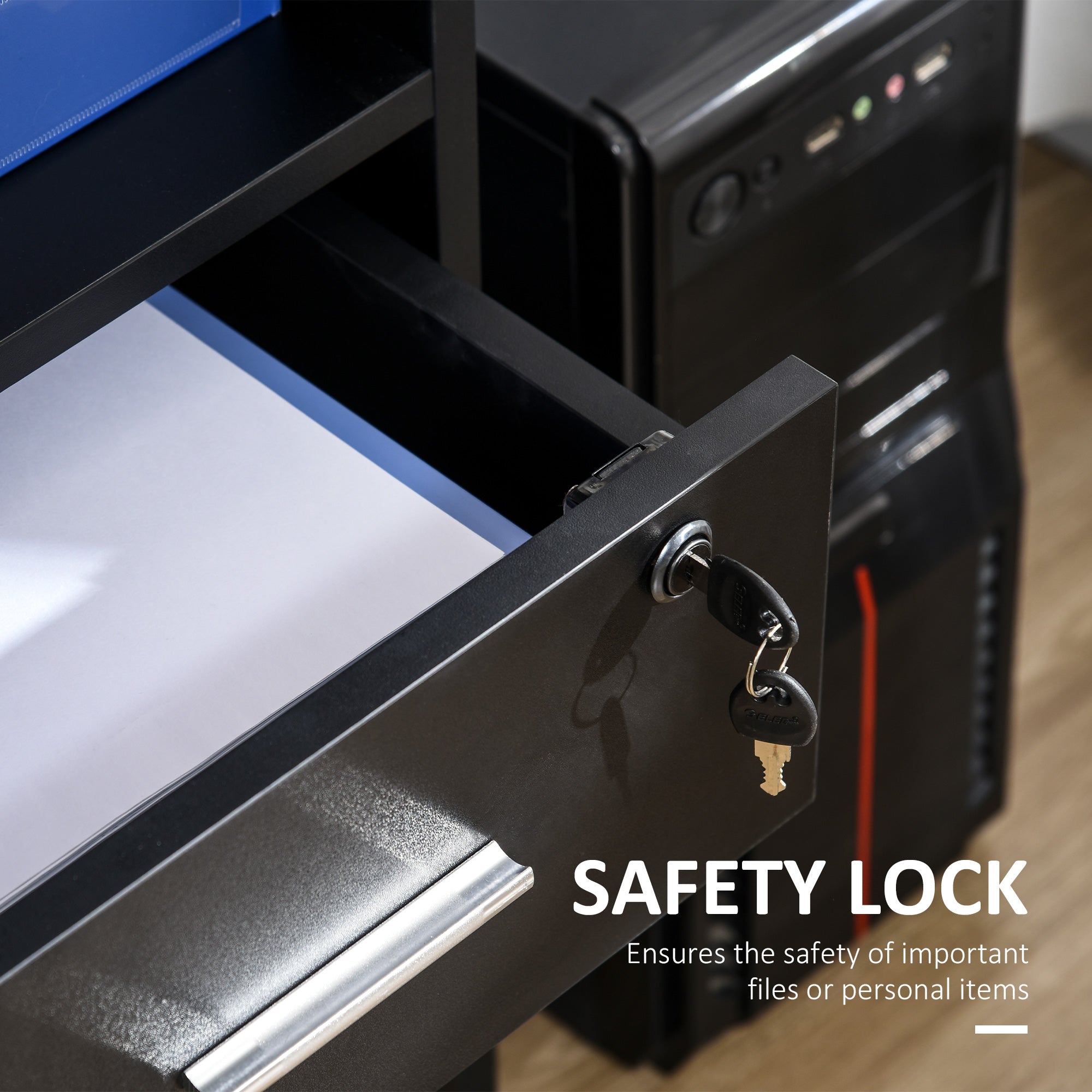 Sécurité et praticité : Le tiroir supérieur est équipé d’une serrure pour protéger vos objets importants. Les patins antidérapants en PE évitent les rayures et assurent une stabilité optimale.