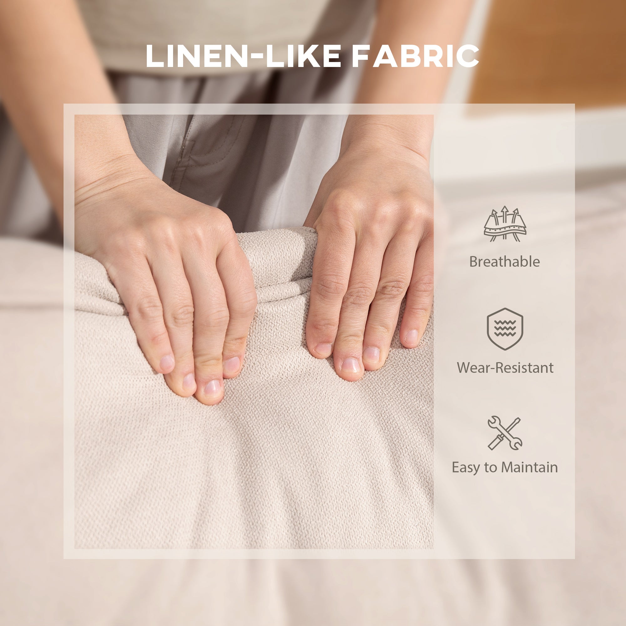 Un style polyvalent : Revêtue d’un tissu beige effet lin, cette causeuse s’harmonise avec tous les styles d’intérieur, du contemporain au classique.