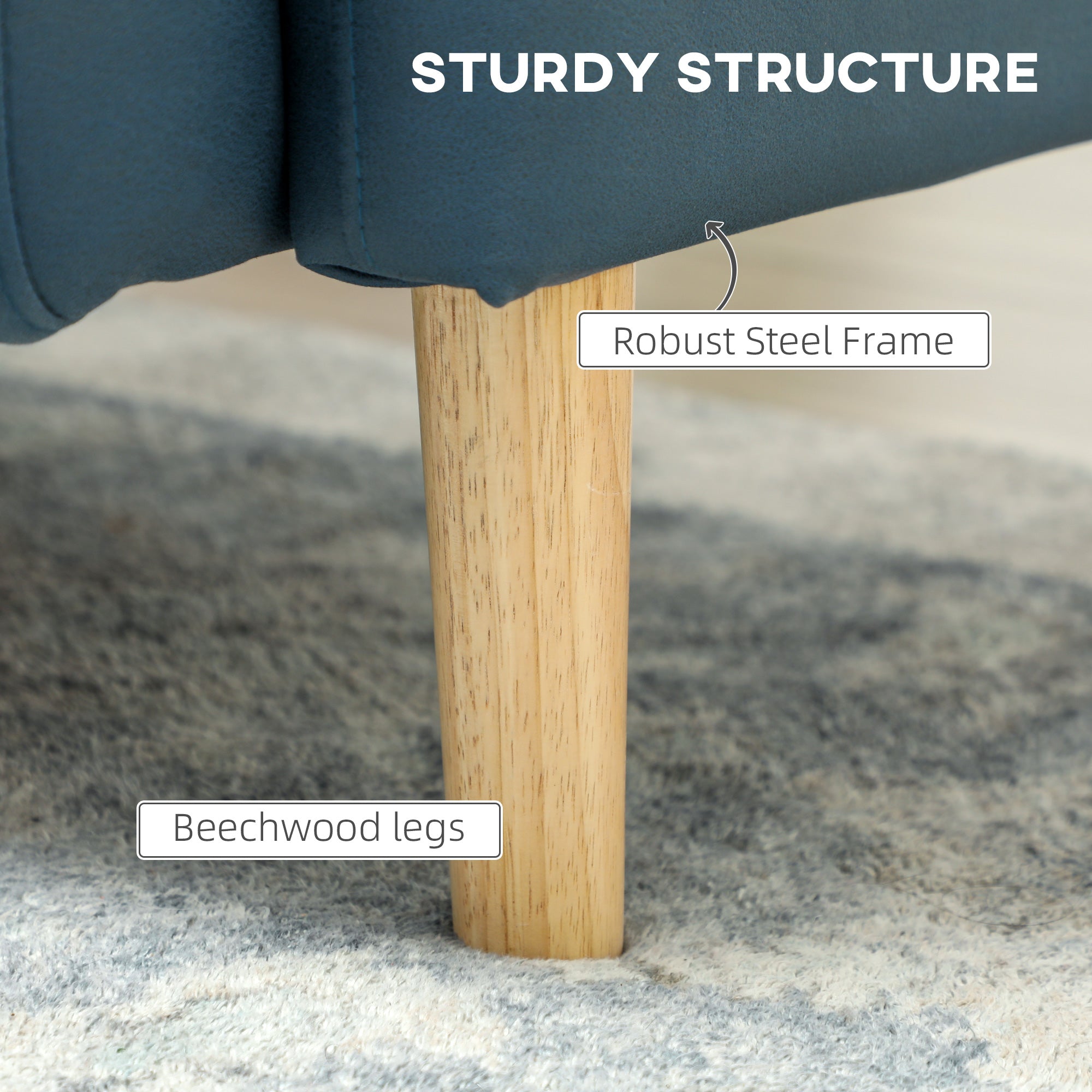 Une robustesse assurée : Avec son cadre en acier et ses quatre pieds en bois de hêtre, cette causeuse garantit stabilité et longévité, tout en protégeant vos sols grâce à ses patins de protection.