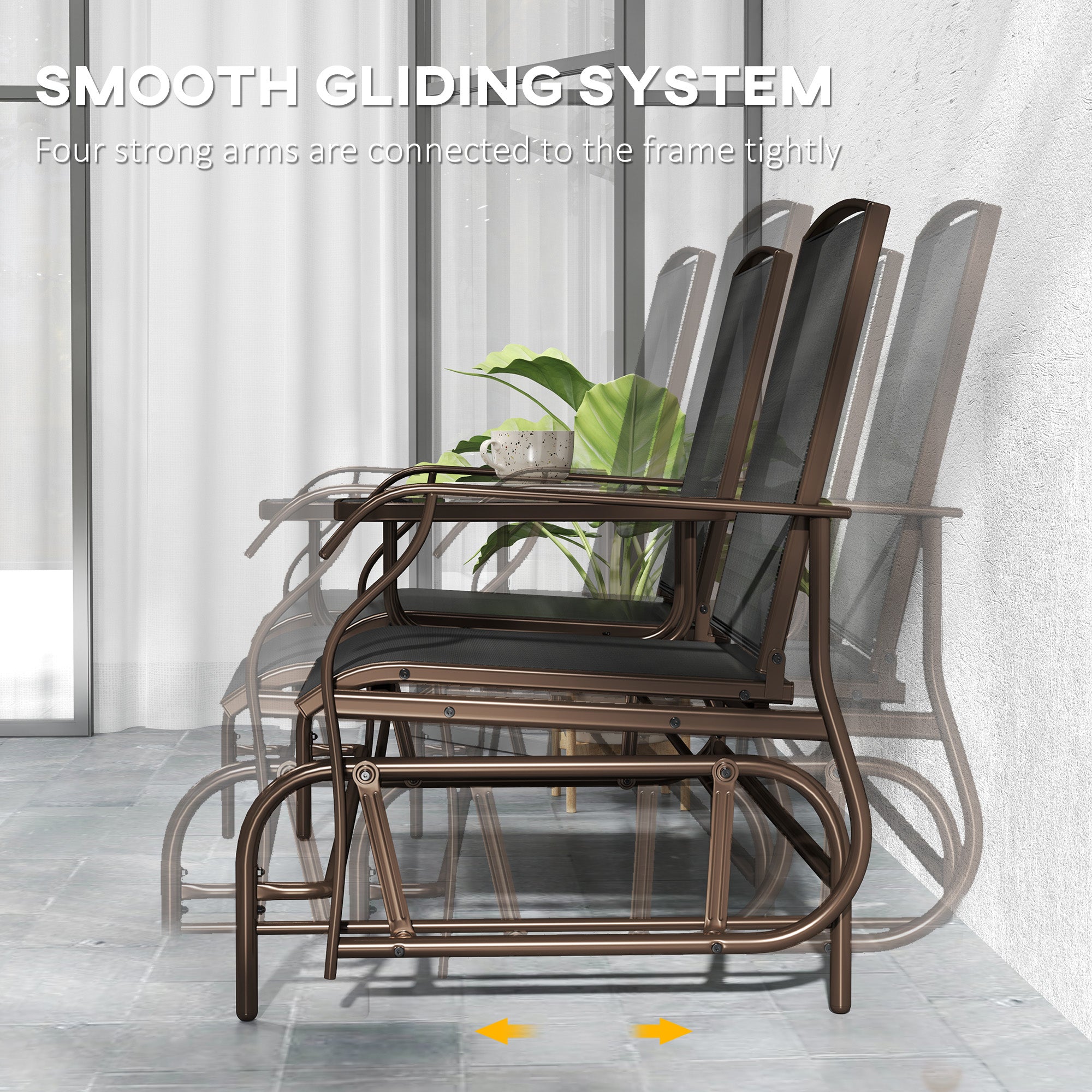 - Prêt à l'emploi en extérieur : le fauteuil à bascule planeur fabriqué avec un cadre en acier avec une finition enduite de poudre et enveloppé dans un tissu textilène respirant du double planeur est résistant aux intempéries et adapté à une utilisation en extérieur.