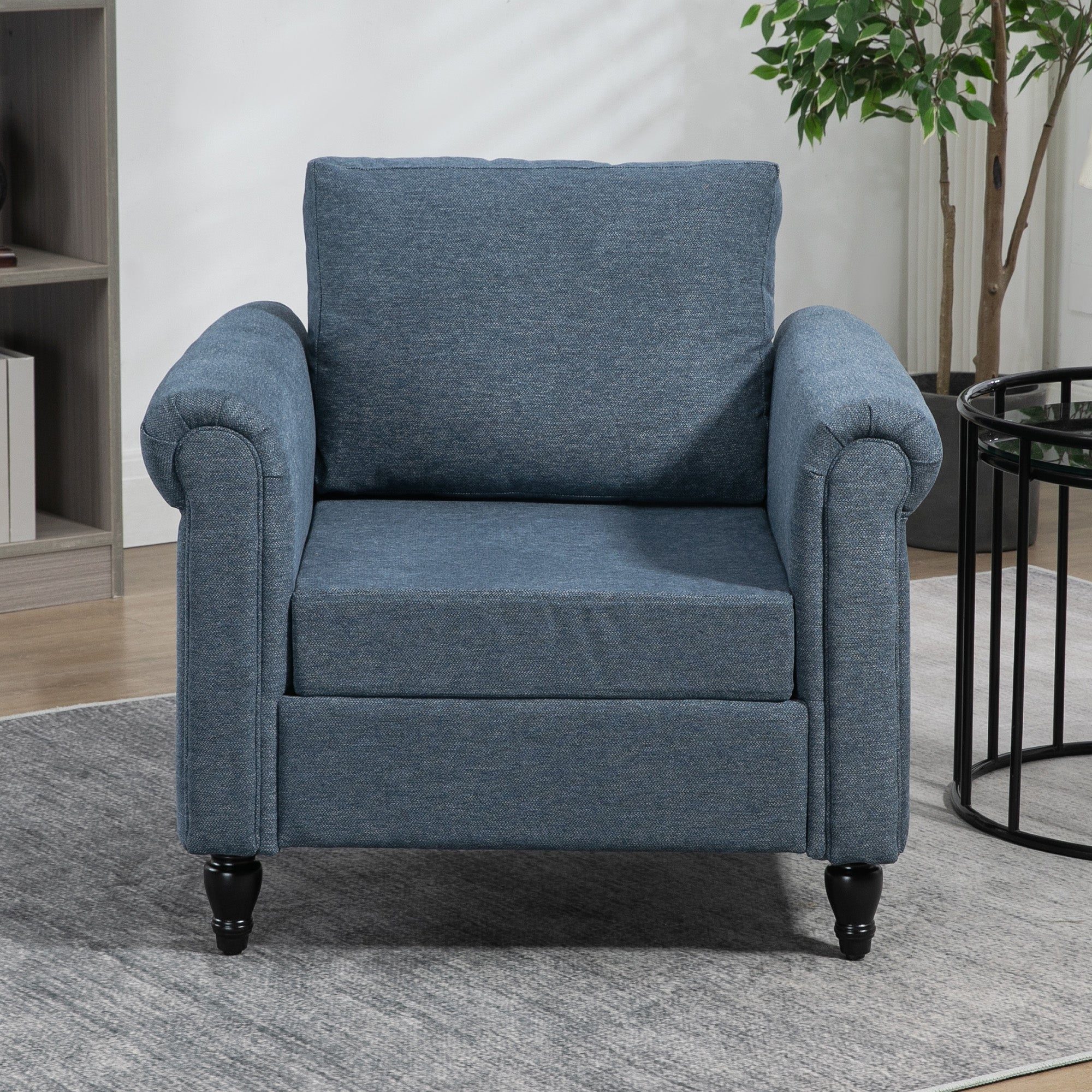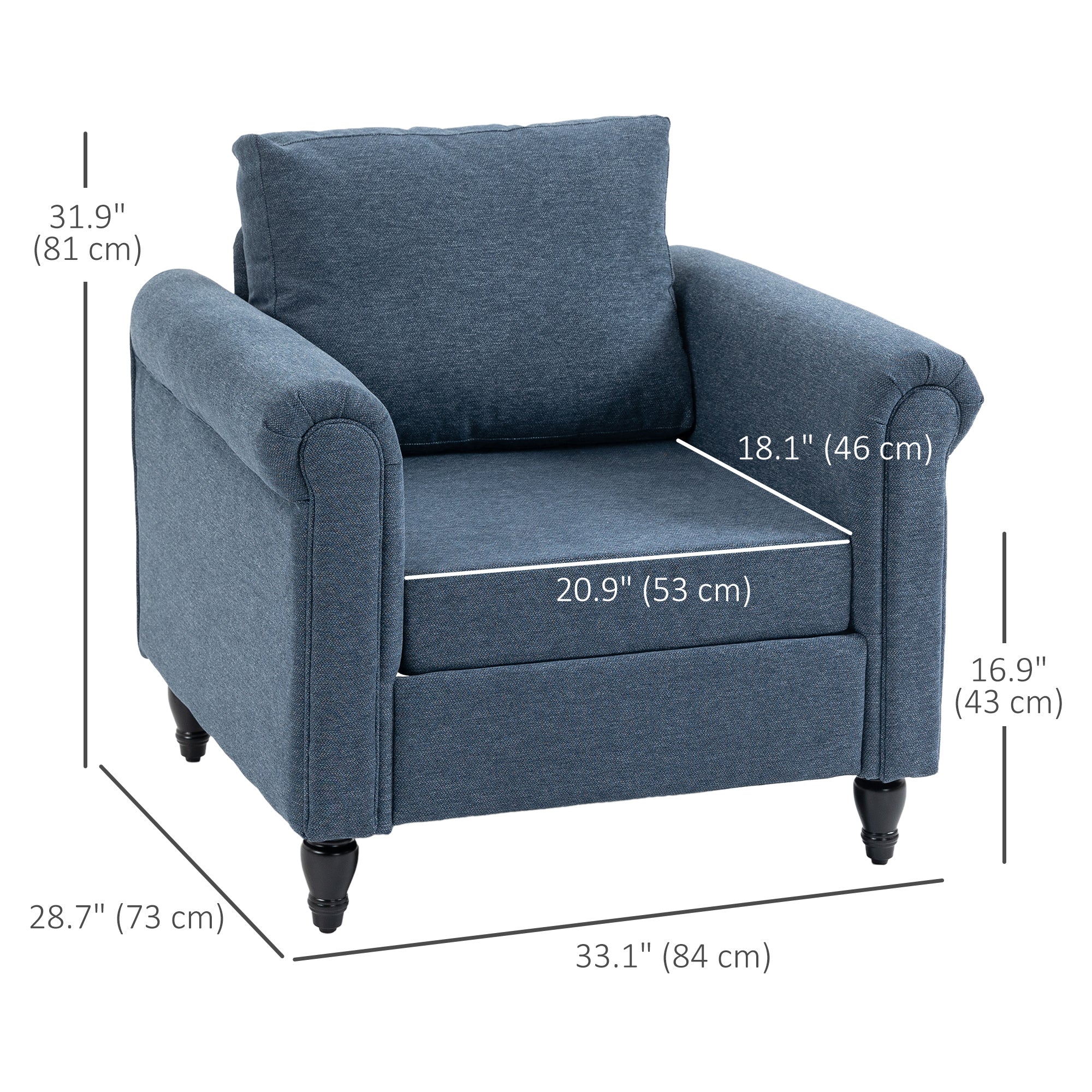 Fauteuil d’appoint bleu foncé en chenille avec coussin
