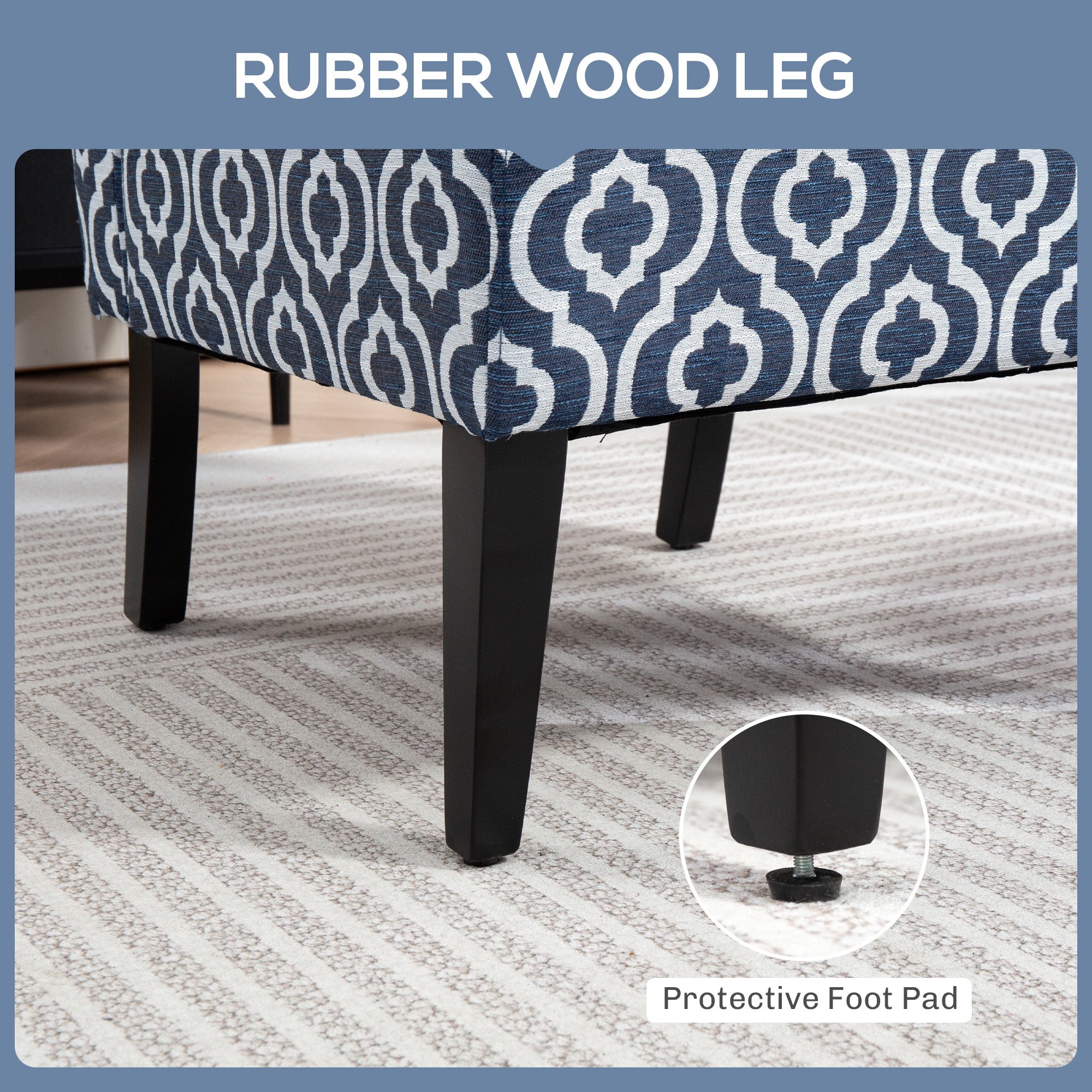 Fauteuil d’appoint bleu en tissu jacquard avec pieds en bois d’hévéa