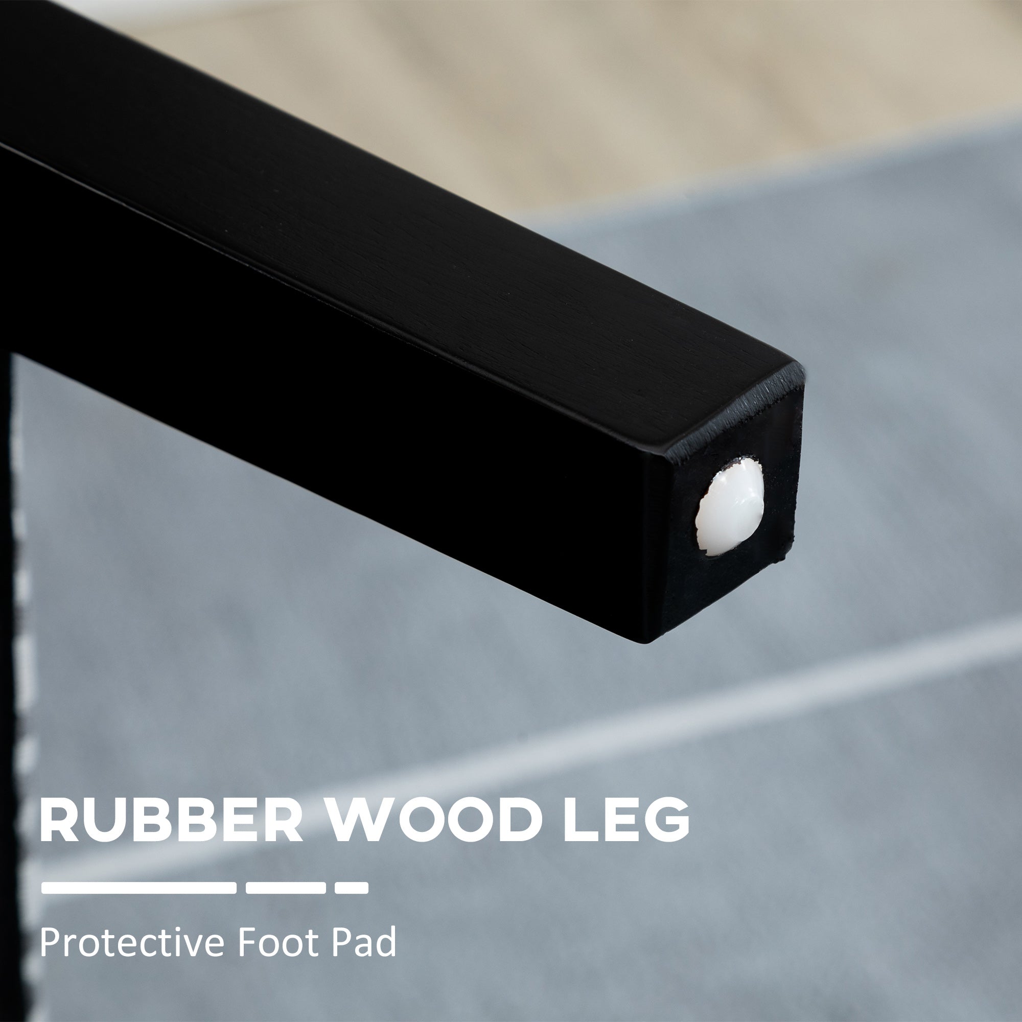 Sa structure robuste en bois et ses quatre pieds en bois d’hévéa garantissent un maintien sûr et une durabilité optimale. Les patins de protection évitent toute rayure sur vos sols.