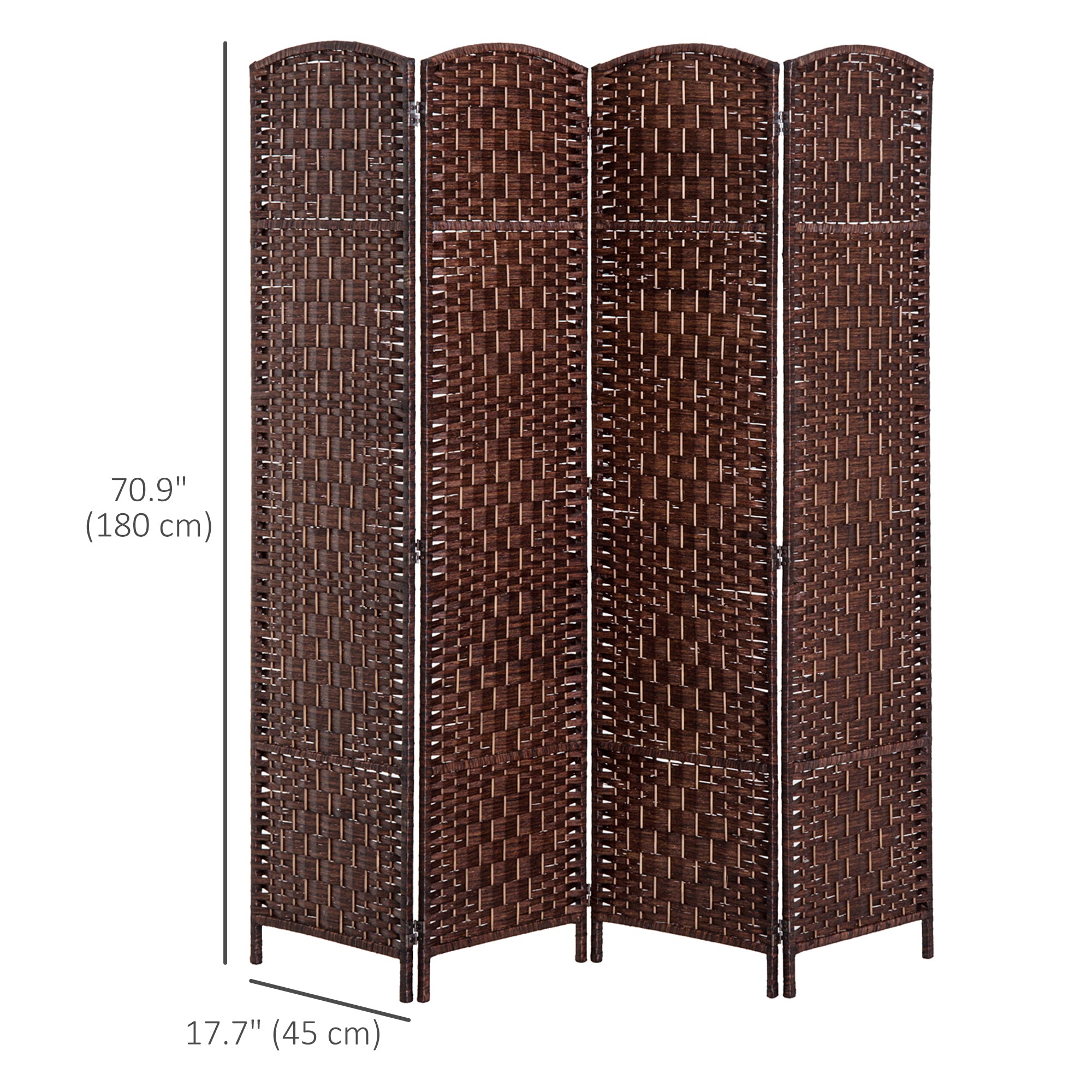 Paravent pliant 4 panneaux brun rustique – tressage artisanal et charme naturel