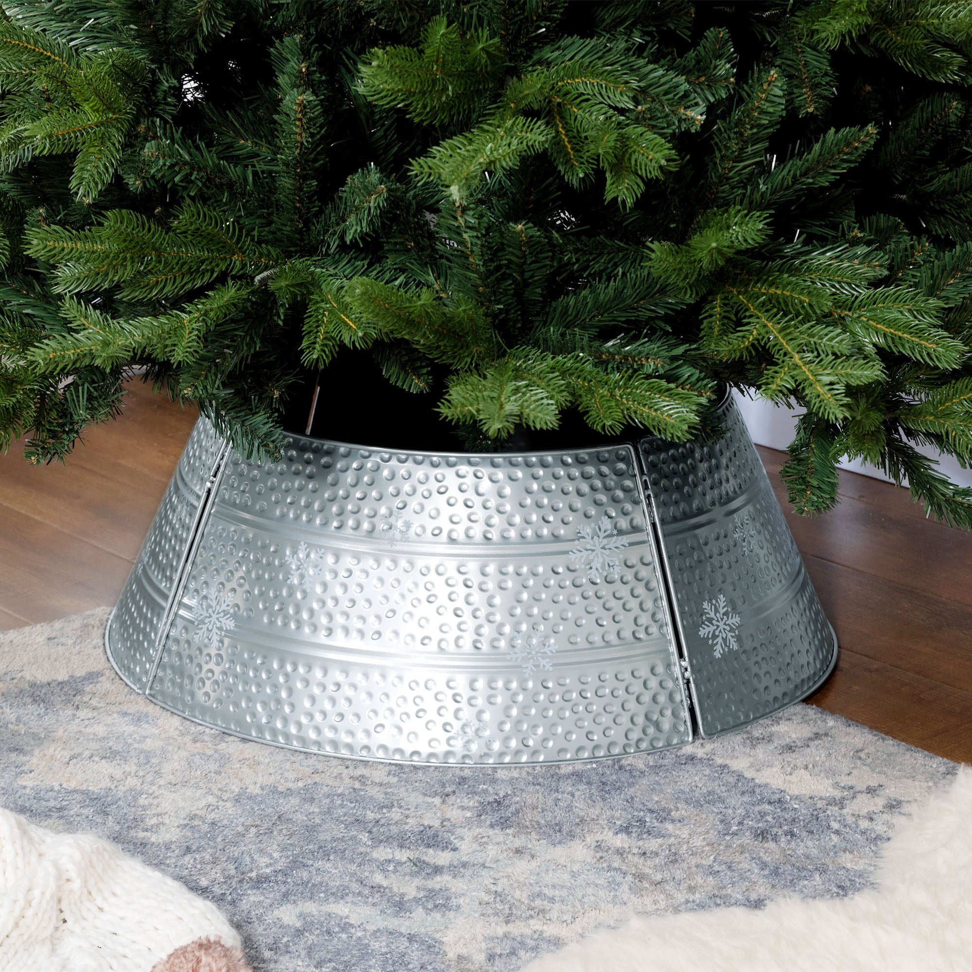 Élégance festive : Apportez une touche raffinée à votre décoration de Noël avec ce collier de sapin au fini argenté et aux motifs délicats de flocons de neige creux. Son design unique transforme instantanément la base de votre arbre en un élément décoratif chic et lumineux.