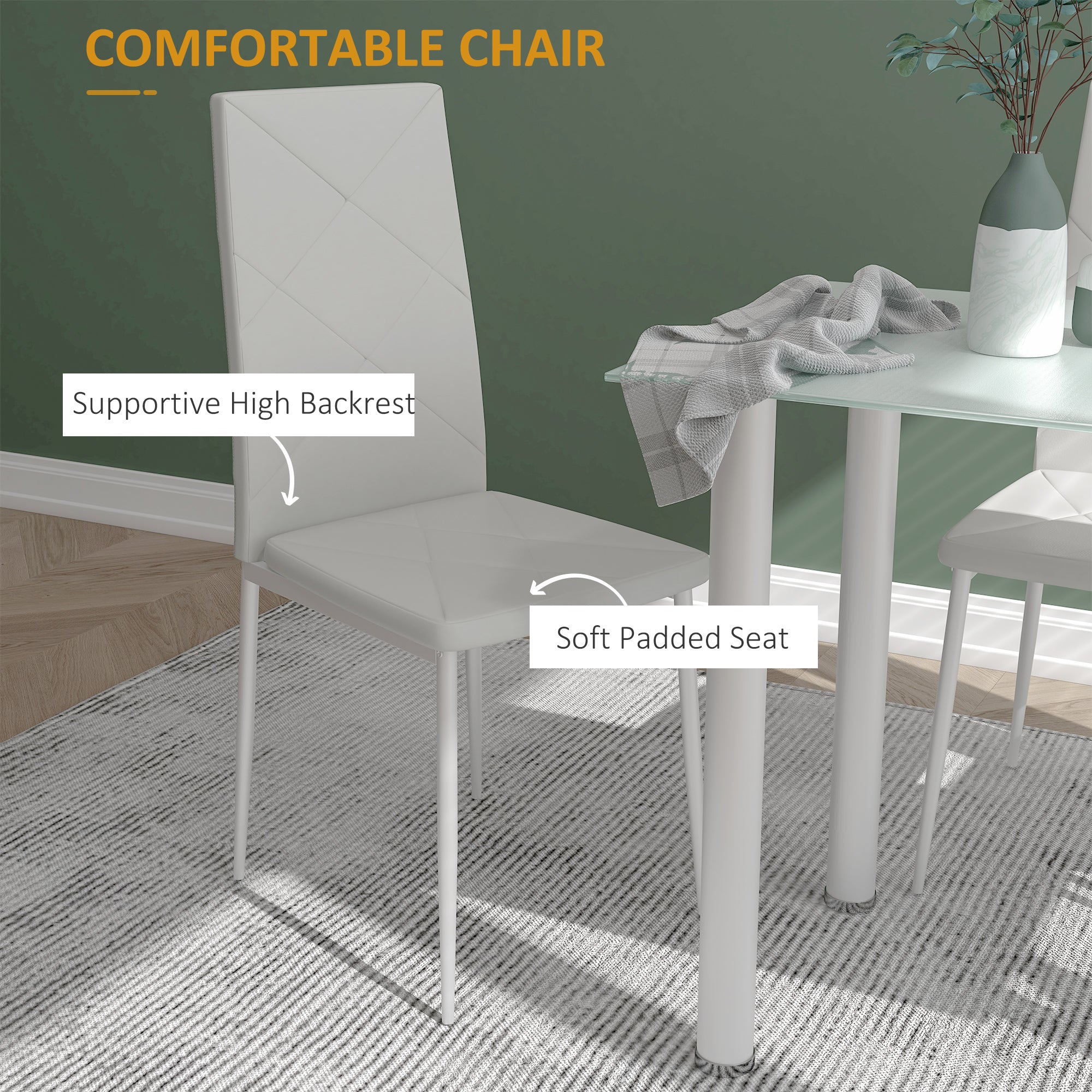 Structure solide : La table est dotée d’un plateau en verre trempé et de pieds en acier avec finition poudre, tandis que les chaises sont recouvertes de cuir PU facile d’entretien. Des patins de protection évitent les rayures sur le sol.