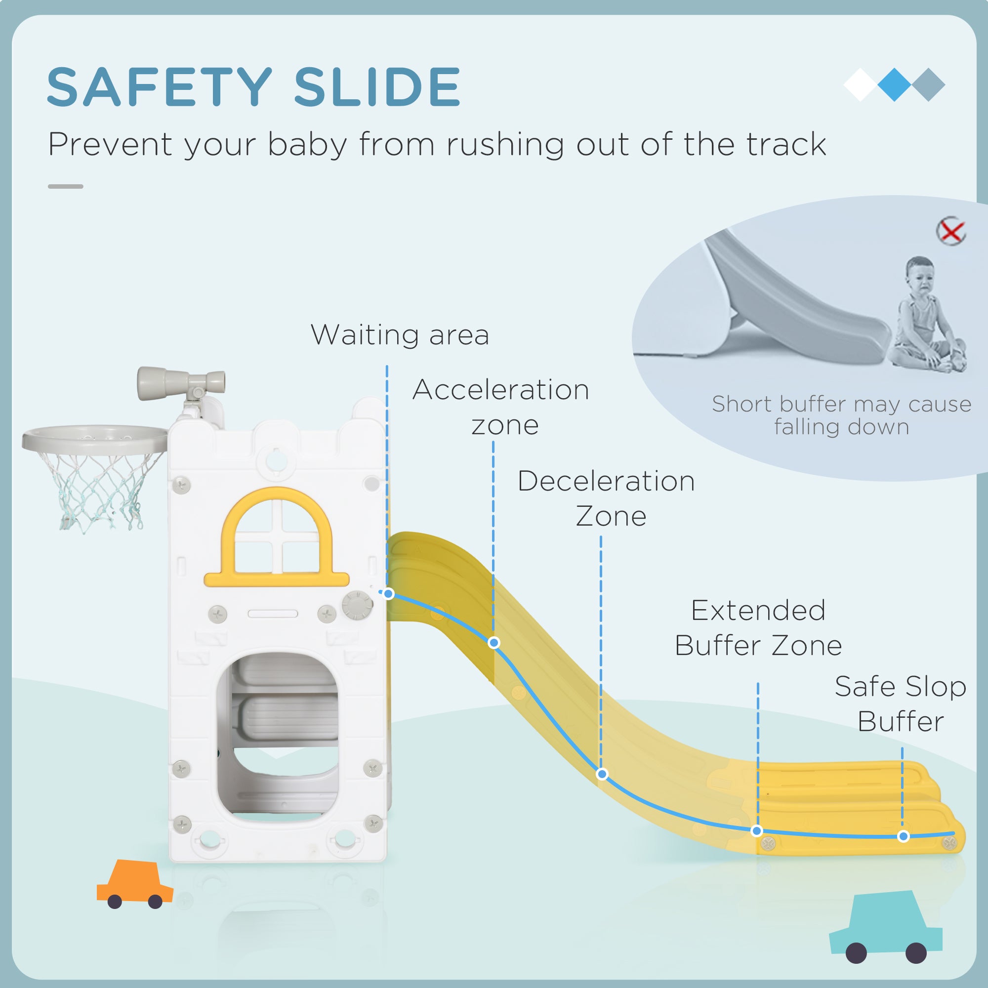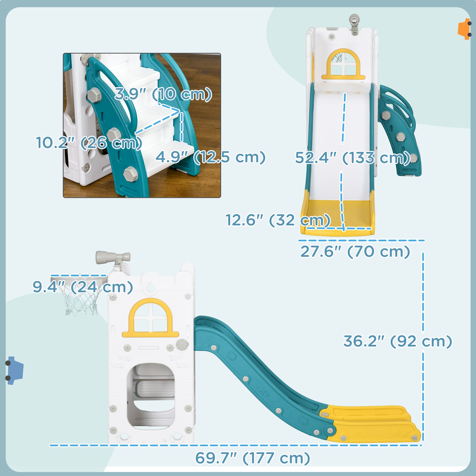 Jeu multifonction : Ce toboggan 4-en-1 combine glissade, panier de basket, télescope et escalade, offrant aux tout-petits une aire de jeux complète et stimulante.