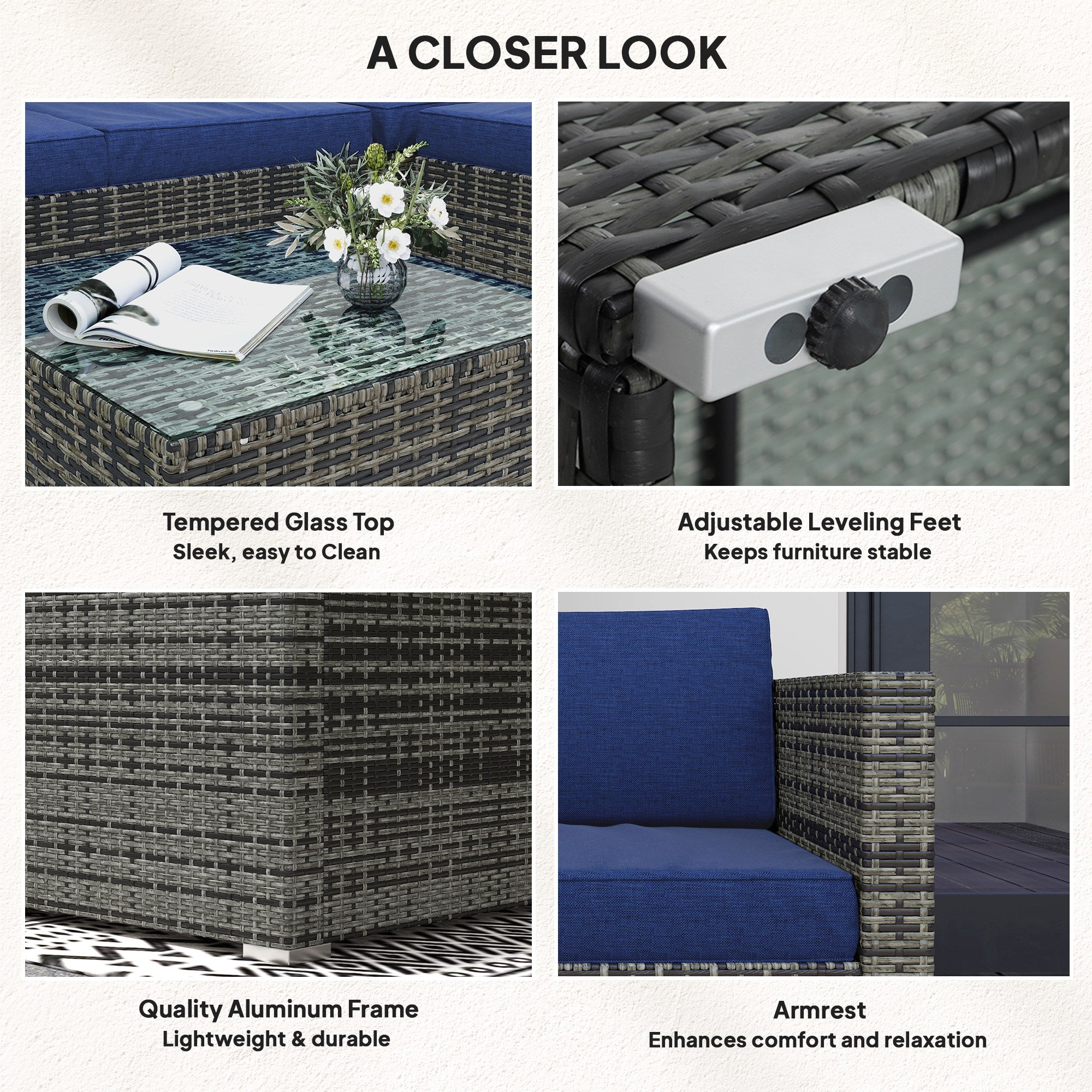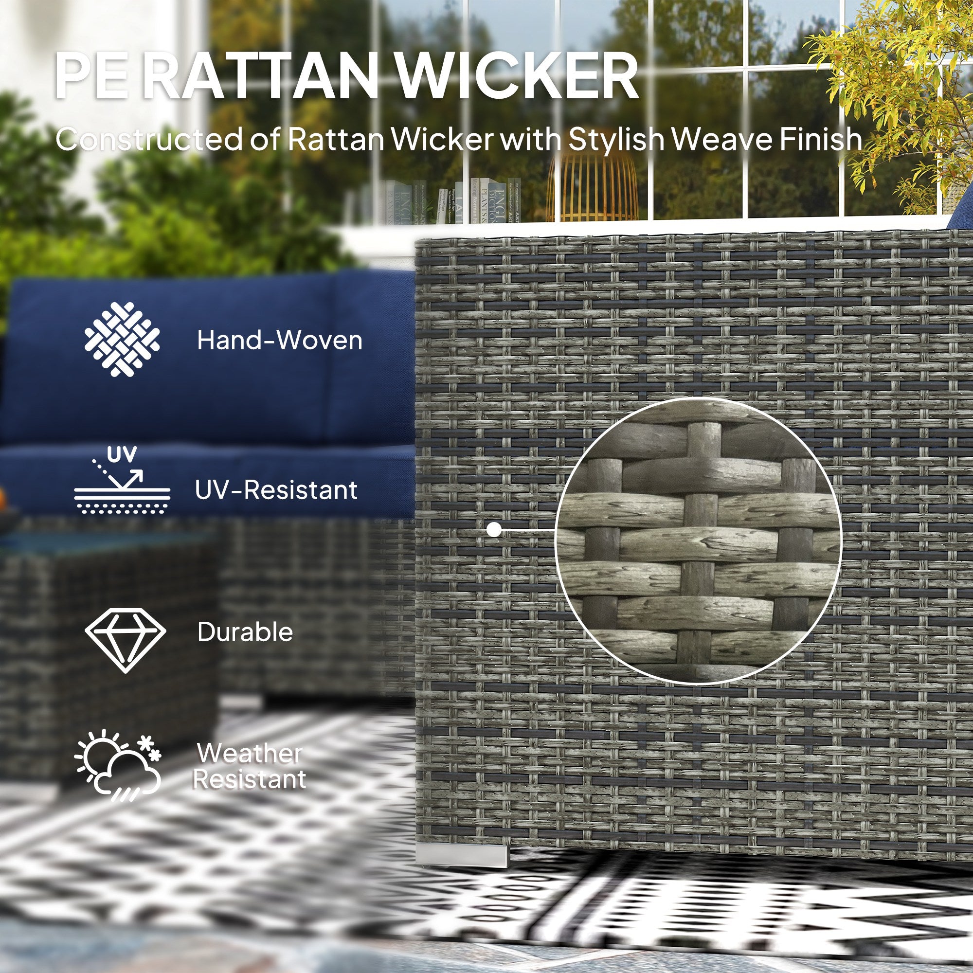 - Ensemble quatre pièces : Cet ensemble de meubles de jardin en rotin comprend deux causeuses, un canapé d'angle et une table basse. Cet ensemble complet offre des sièges confortables pour votre espace extérieur.