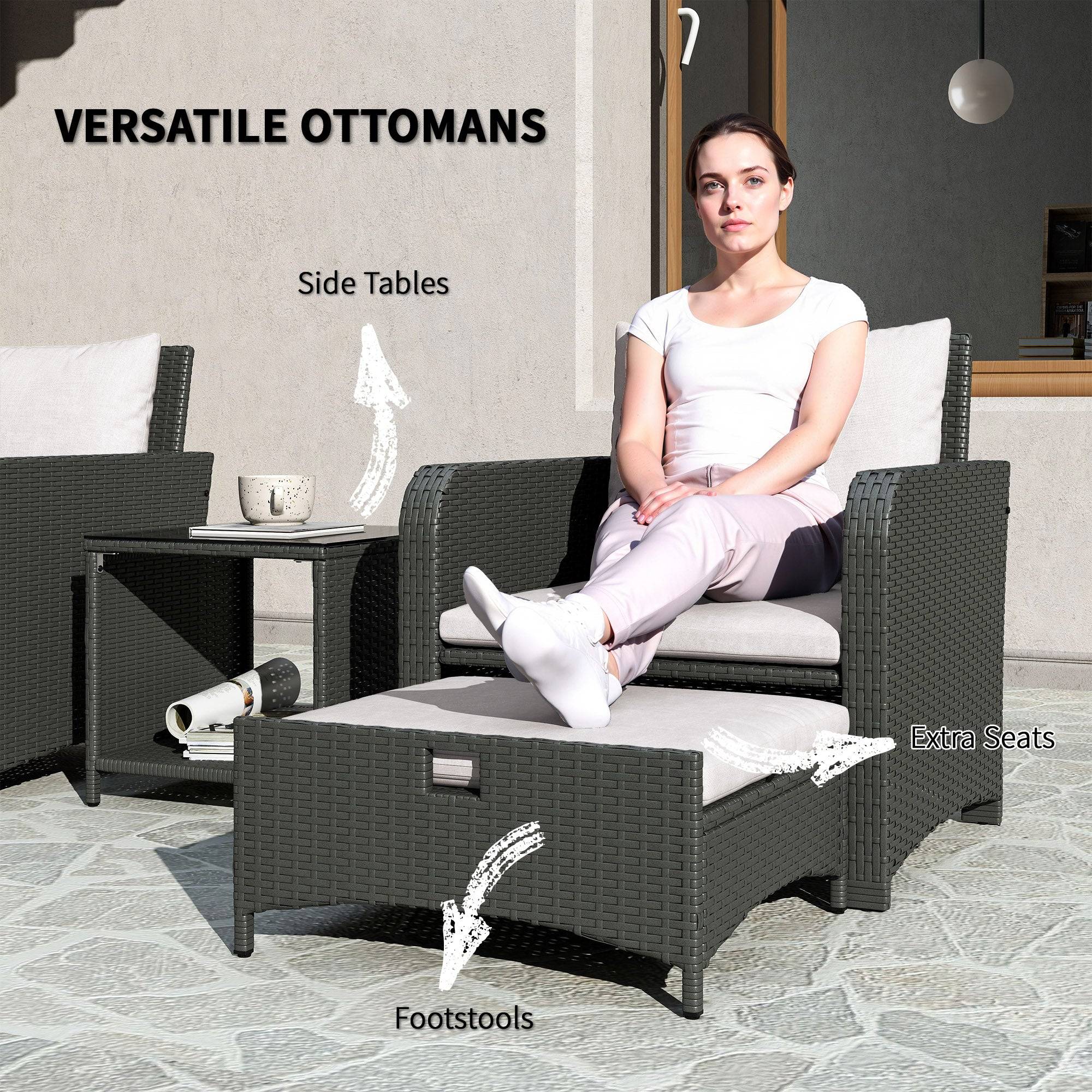 - Rotin tressé et acier robuste : Fabriqué en rotin synthétique résistant aux UV et à la décoloration, cet ensemble de patio conserve son élégance au fil des saisons. Sa structure en acier thermolaqué, dotée de pieds réglables, offre un soutien et une stabilité fiables.