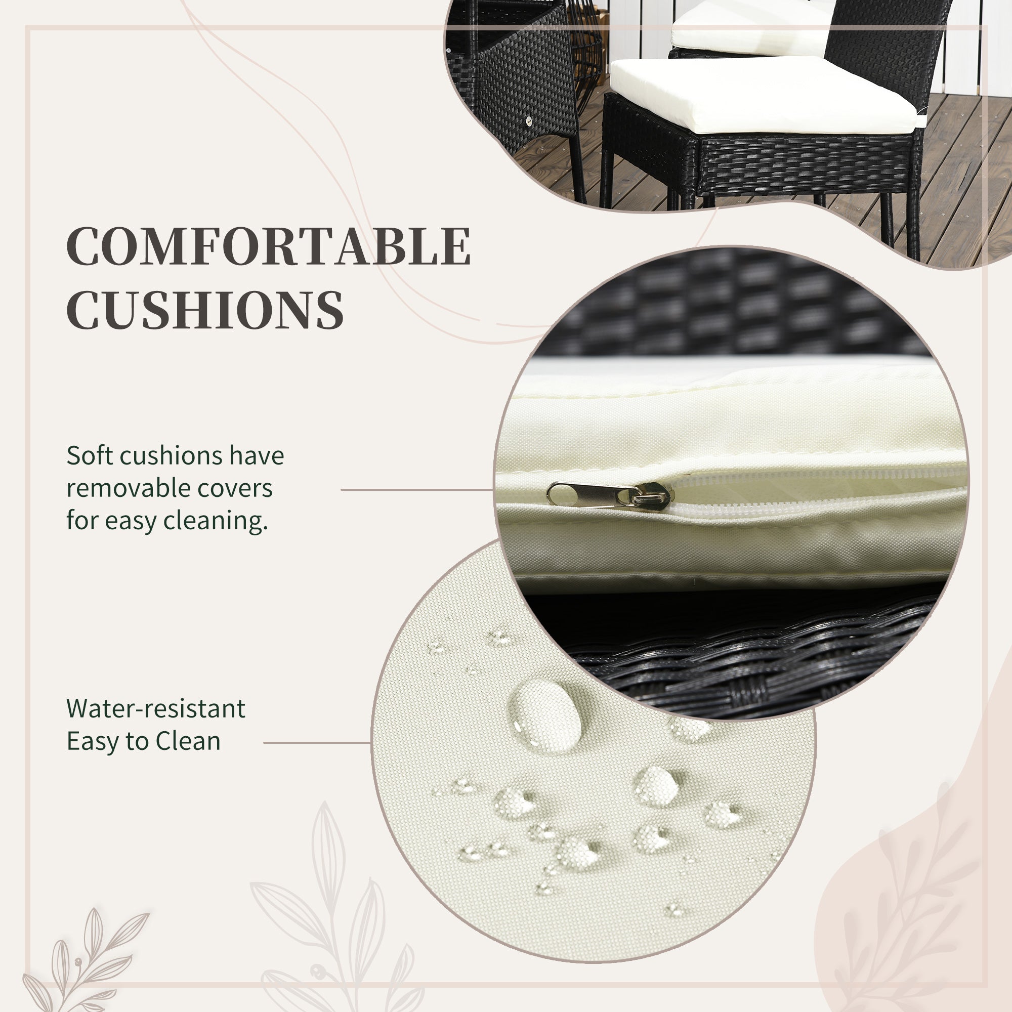 - Coussin de chaise doux et élégant : le dossier haut et les sièges sont dotés de coussins moelleux pour un confort optimal et des longues heures de détente. Les housses de coussin sont dotées de fermetures éclair pour un retrait et un lavage faciles.