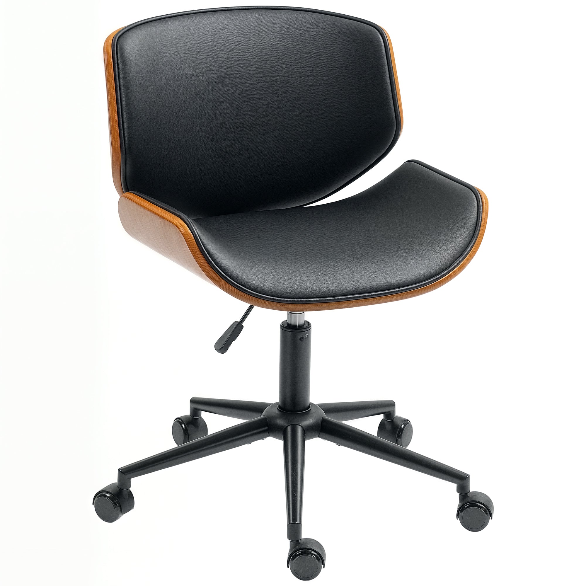 Style intemporel : Inspirée du design mid-century moderne, cette chaise de bureau se distingue par sa coque en bois cintré et son revêtement en simili cuir raffiné. Elle apporte une touche chic et sophistiquée à tout espace de travail.