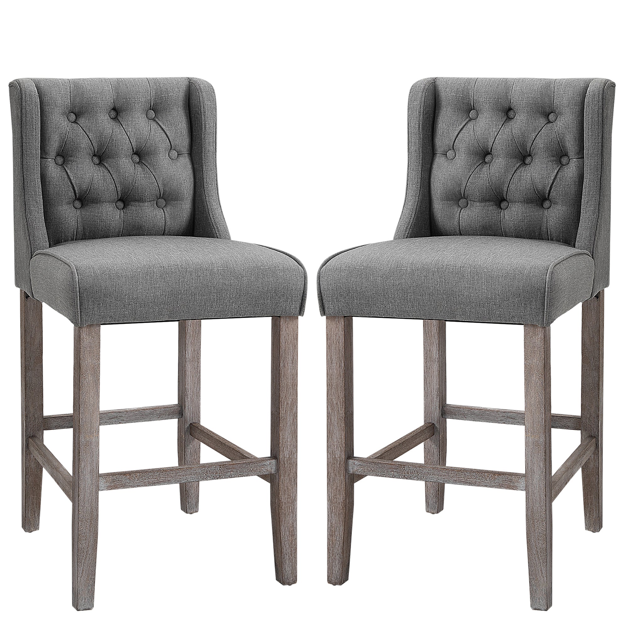 Construction solide : Chaque tabouret est recouvert d’un tissu polyester aspect lin, respirant et facile d’entretien. Les pieds en bois d’hévéa apportent stabilité et robustesse, tandis que le repose-pieds intégré assure un confort supplémentaire.