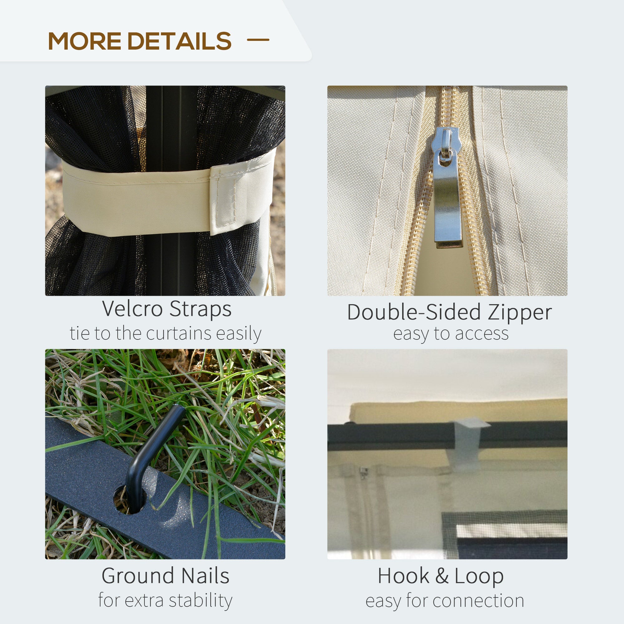 - Toit à deux niveaux : Le toit à deux niveaux avec filet permet à l'air de circuler à l'intérieur pour vous garder au frais. La tonnelle extérieure est fabriquée en polyester avec un revêtement PA pour la protéger des rayons directs du soleil. Les crochets d'angle au plafond et à l'avant-toit permettent de suspendre des lampes ou des ventilateurs.