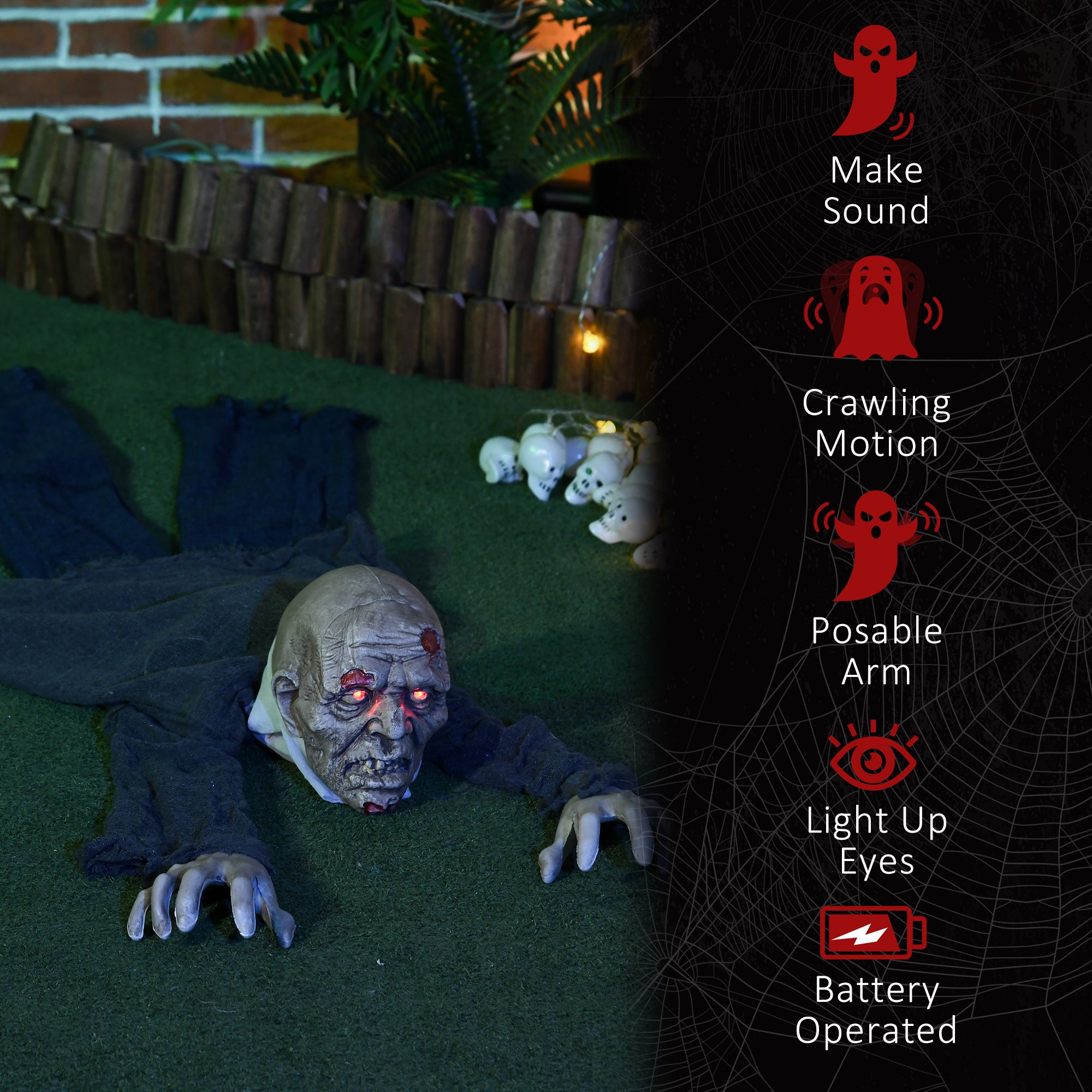 Ajoutez du frisson à vos soirées avec ce zombie rampant effrayant. Son design réaliste, ses yeux lumineux et ses mouvements créent une ambiance glaçante qui surprendra vos visiteurs et fera de votre jardin la star du voisinage.