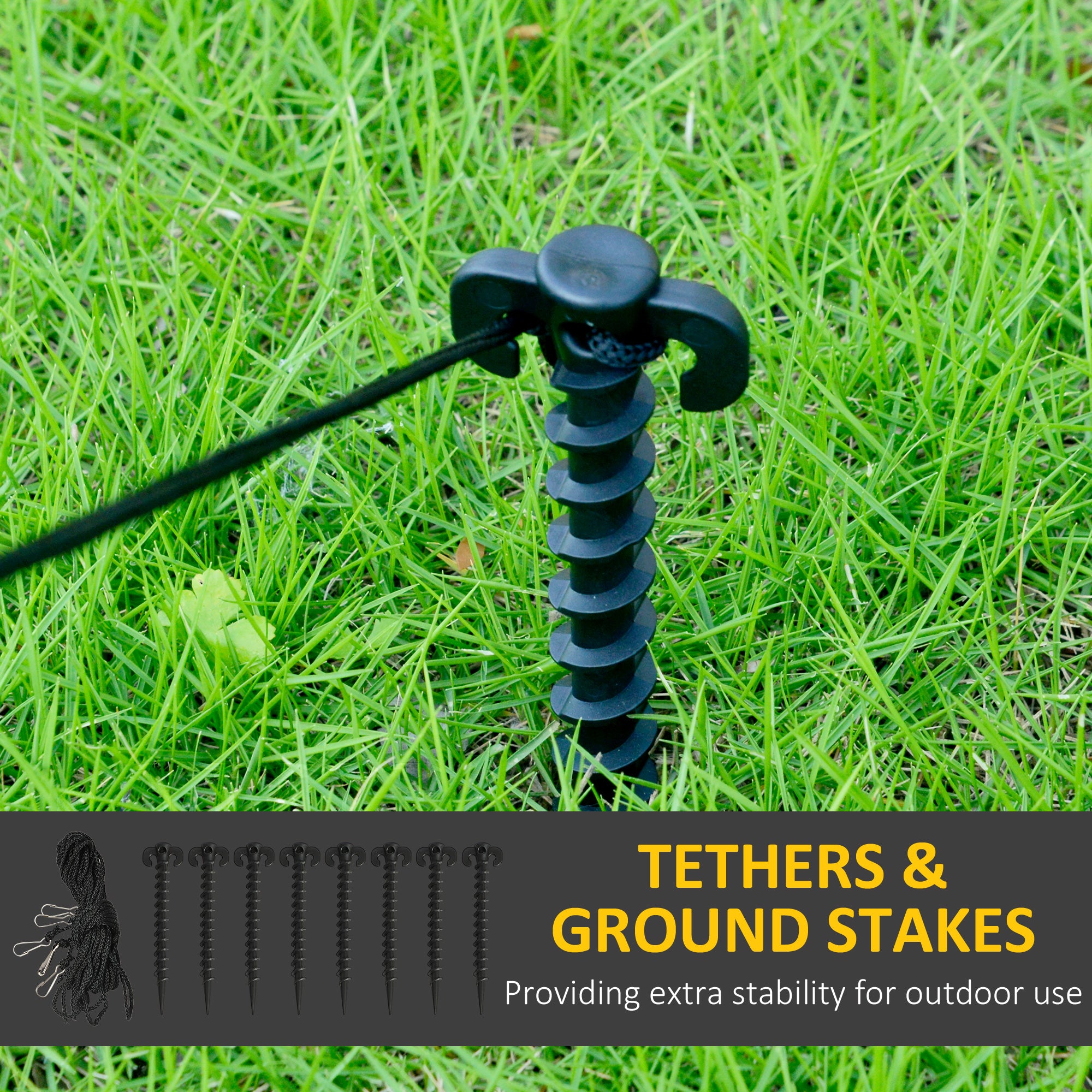 - Fixation : 8 piquets + 3 attaches inclus