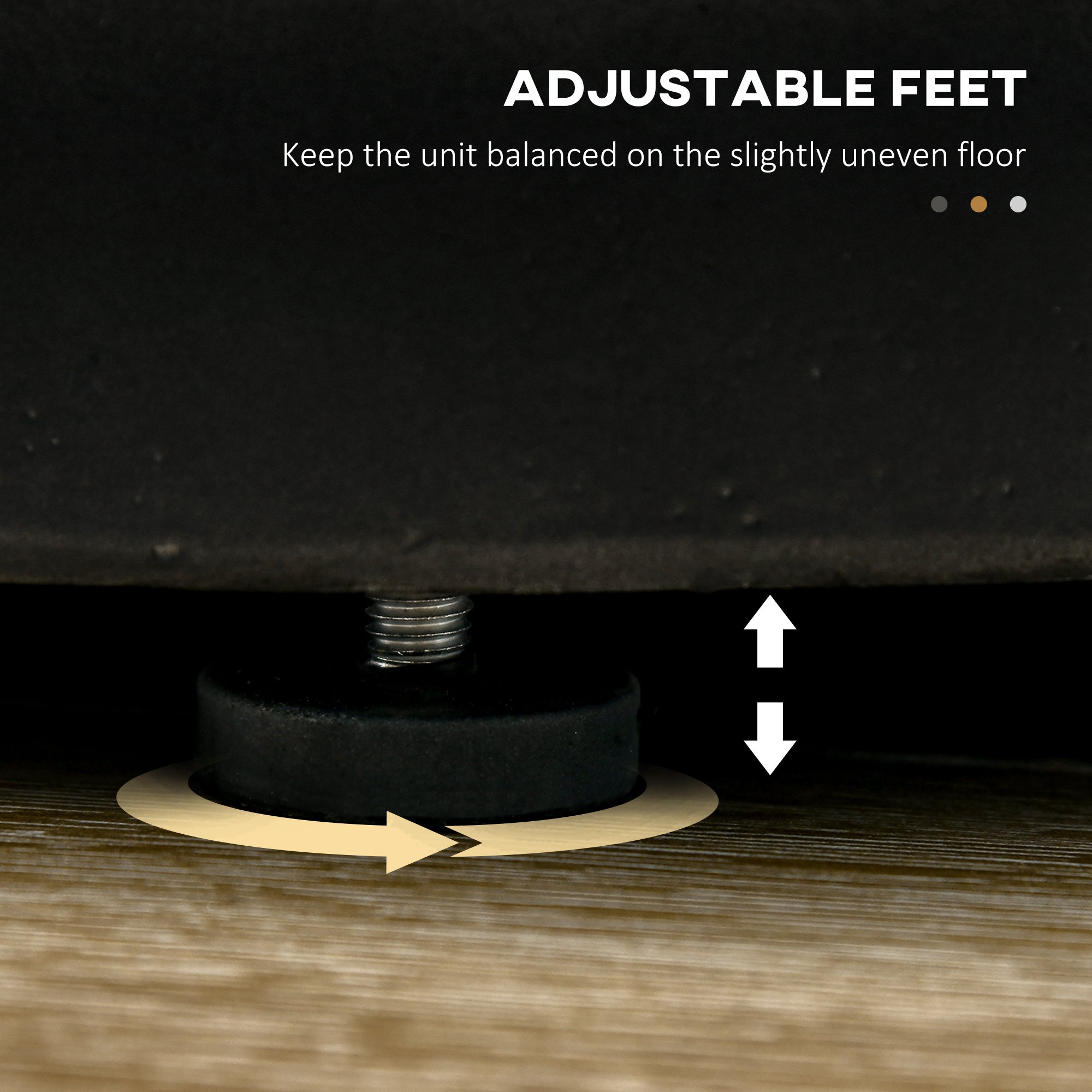 Stabilité optimale Équipée de quatre patins réglables, elle reste parfaitement en place sur toutes les surfaces et se nettoie facilement grâce à sa finition peinte.