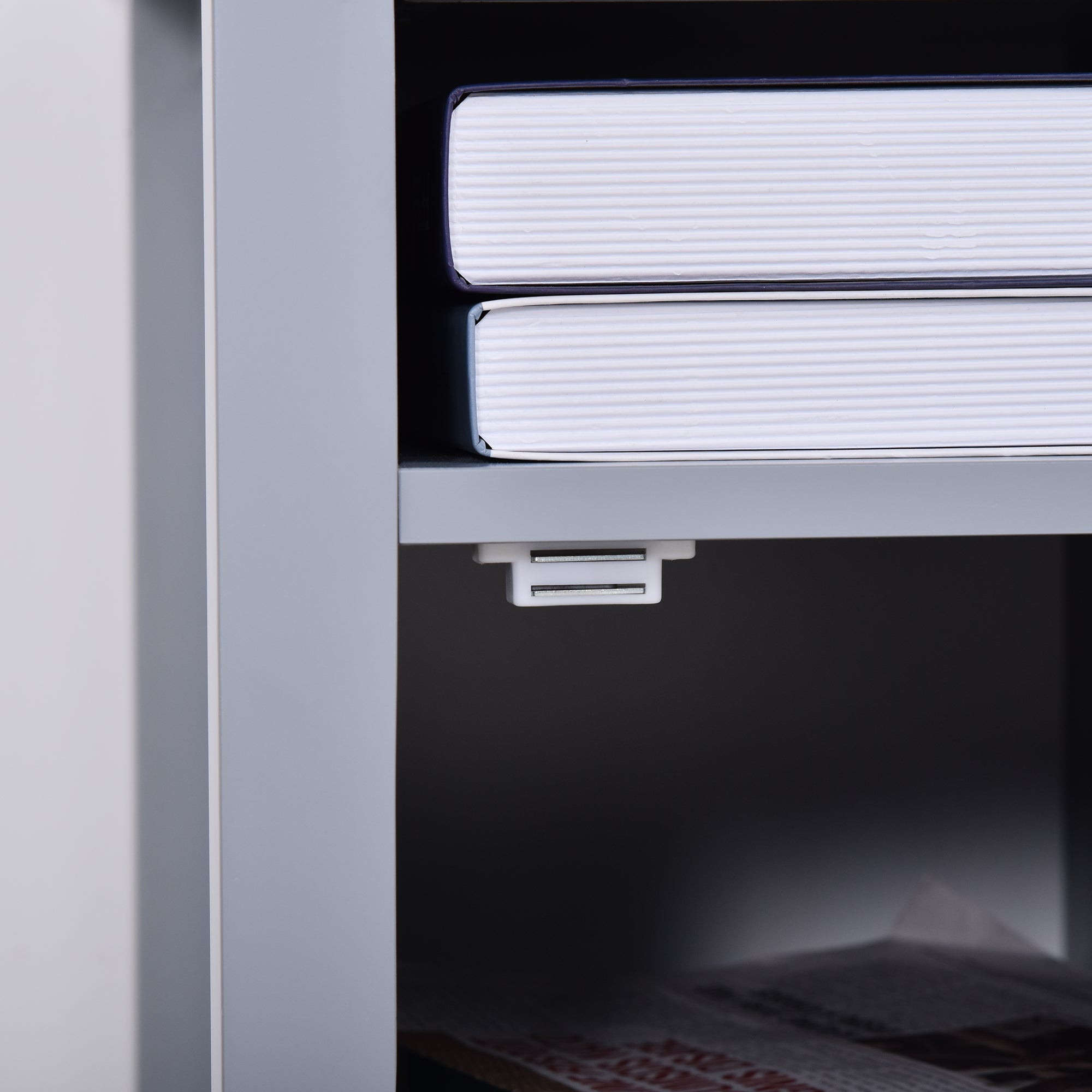 - Capacité de poids : 50 kg (total), 5 kg (plateau/étagère ouverte), 10 kg (armoire)