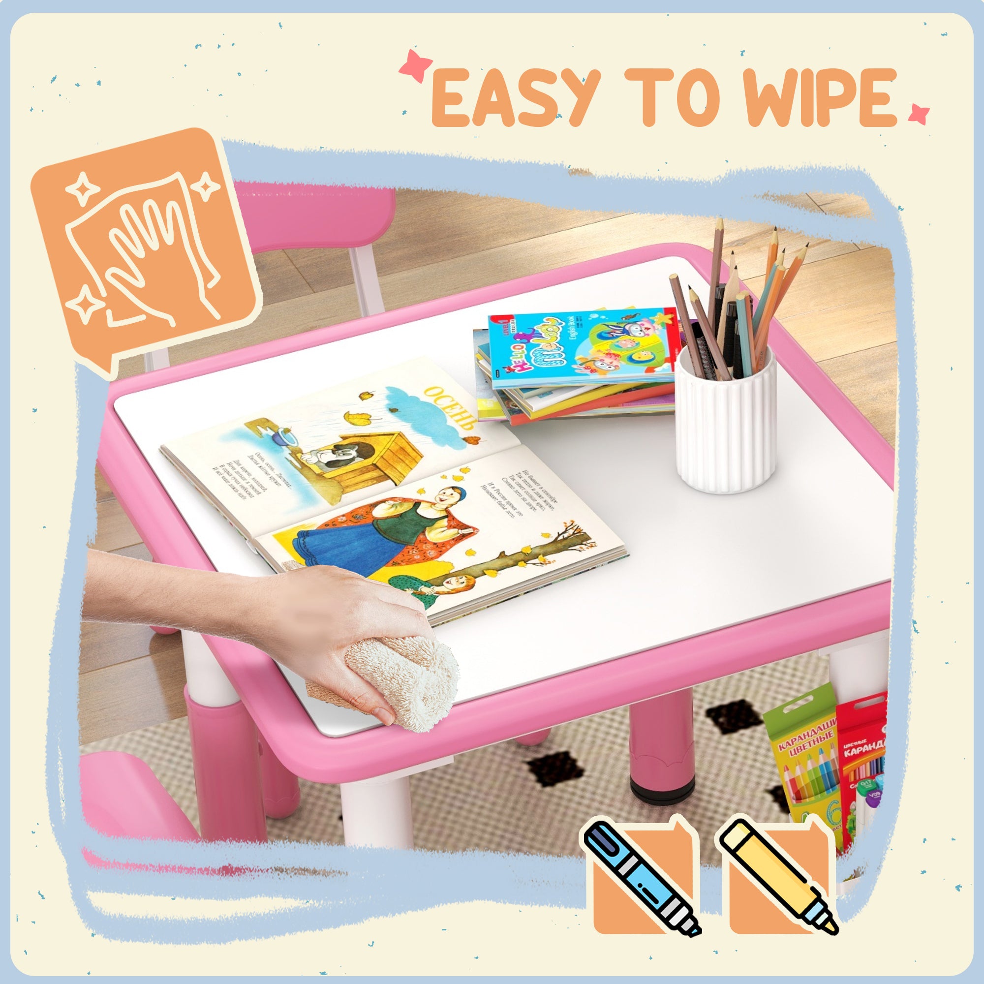 Ensemble table et 4 chaises réglables pour enfants (rose)