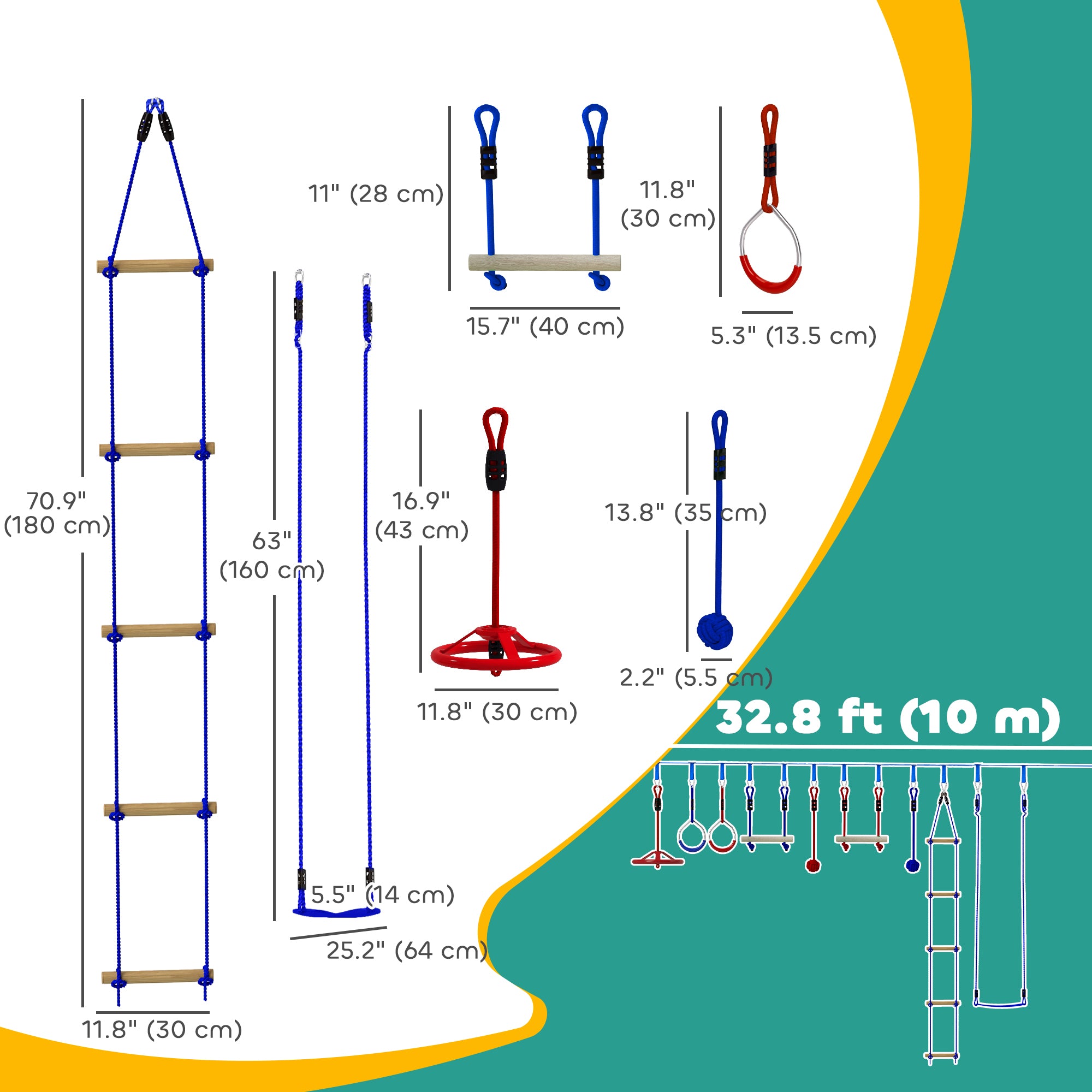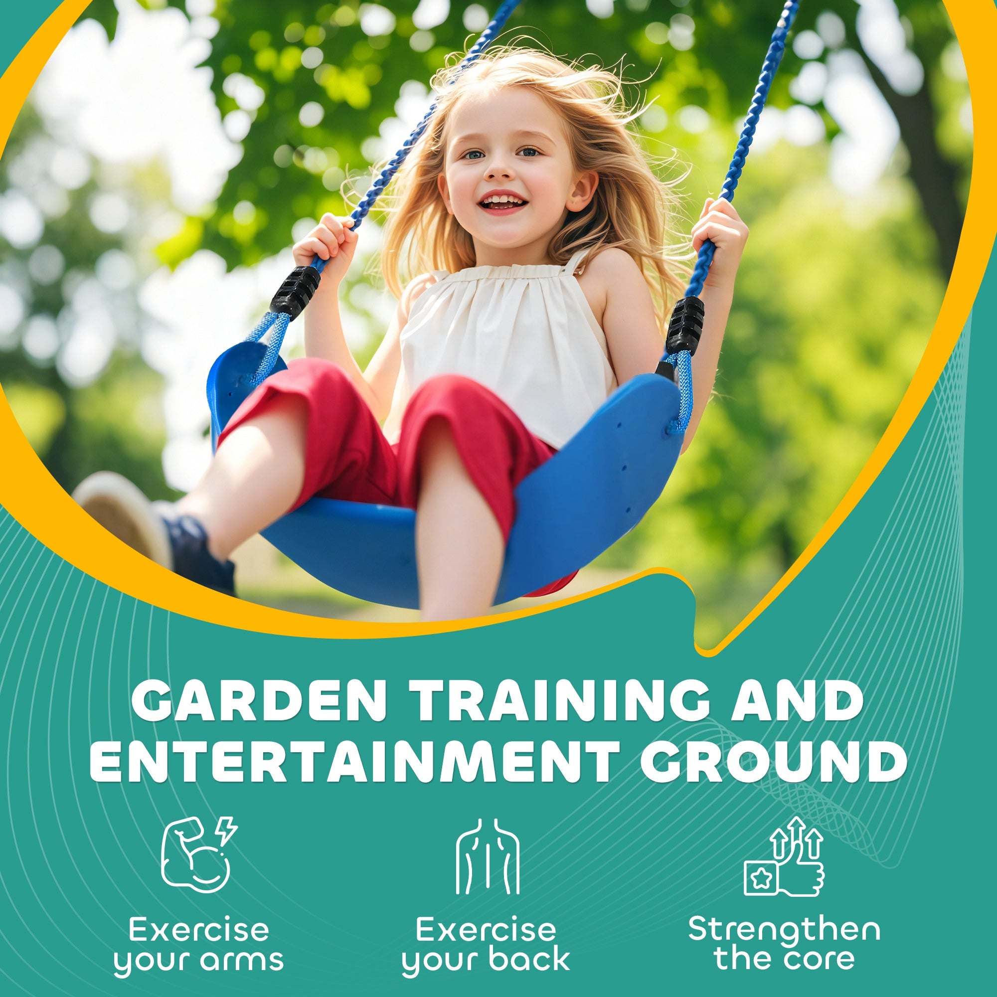 - Une aventure passionnante au jardin : Transformez votre jardin en aire de jeux ! Ce kit de tyrolienne pour enfants comprend deux anneaux, deux barres de suspension, deux balles en corde, un plateau suspendu, une balançoire et une échelle d'escalade, pour des heures de plaisir en plein air.