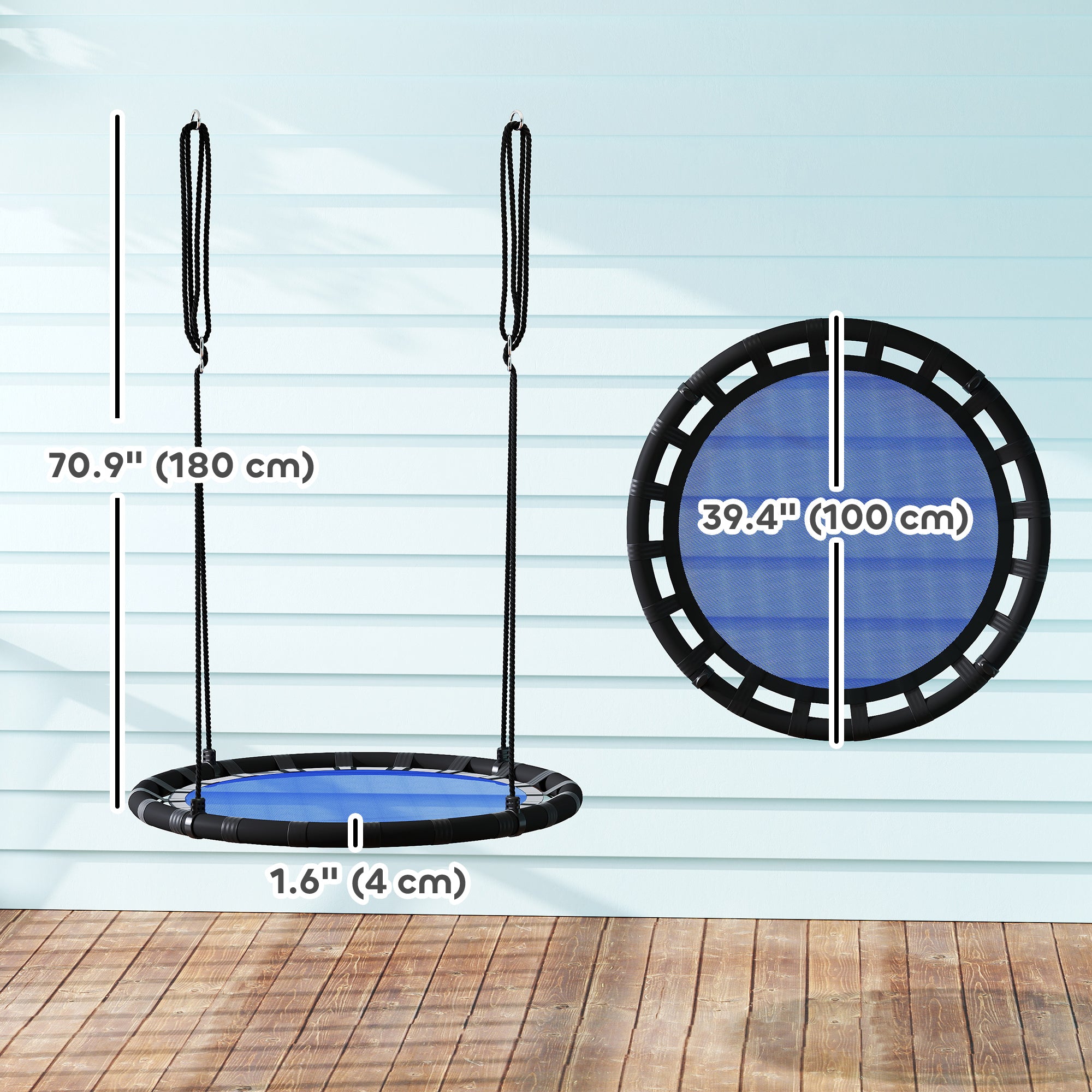 Balançoire ronde bleu marine pour enfants – Siège en maille respirante et cordes réglables