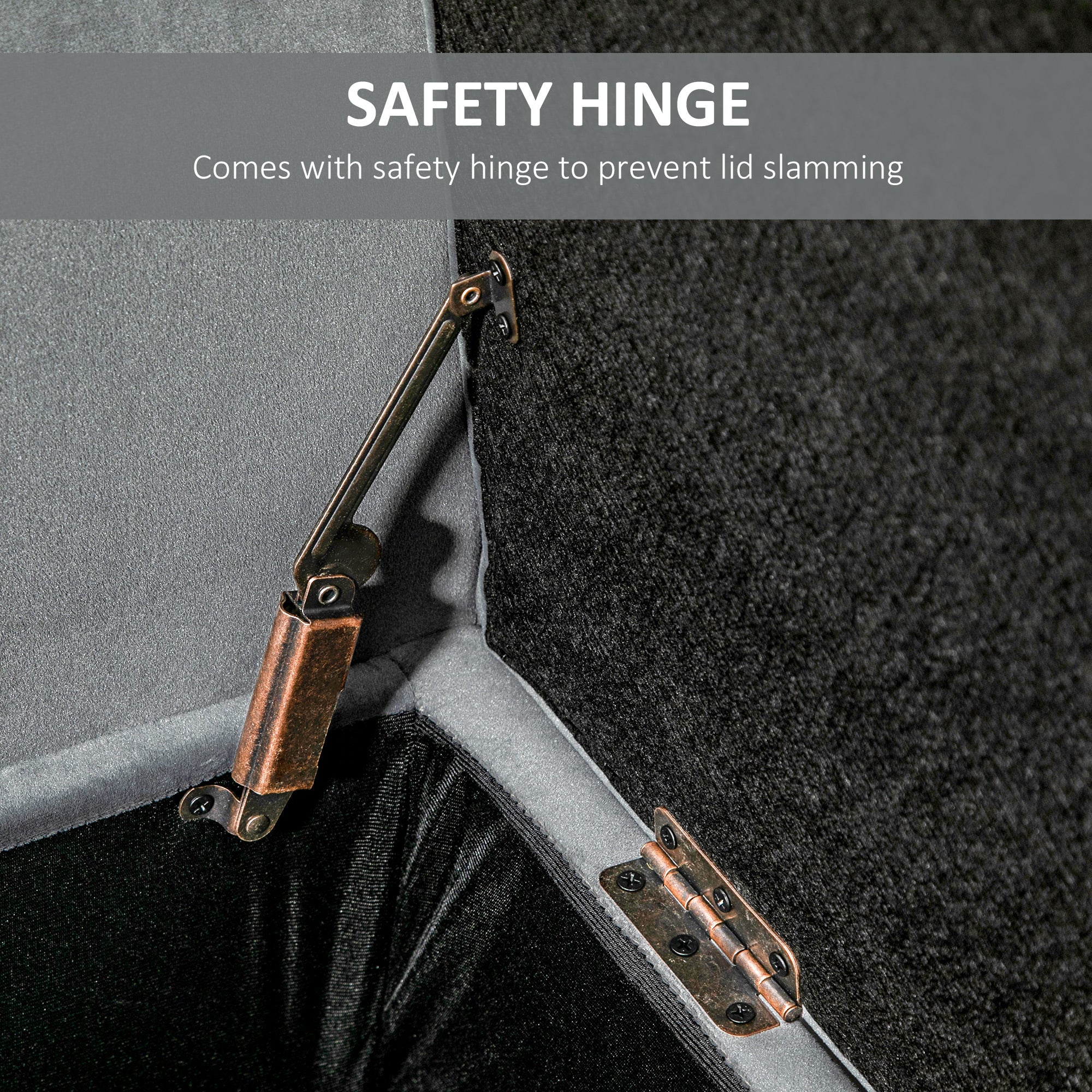 Banc ottoman de rangement gris en velours – Accoudoirs roulés et assise capitonnée