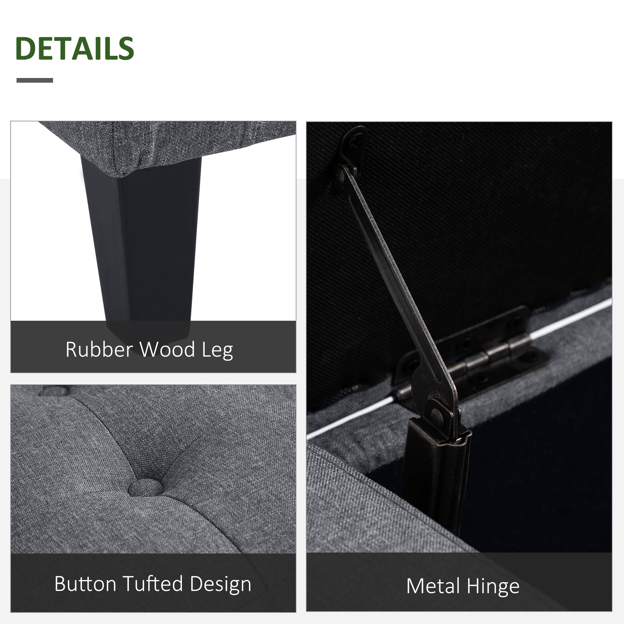 Confort supérieur : rembourré d’une mousse haute densité et revêtu d’un tissu polyester au toucher lin, il offre une assise douce et agréable. Parfait comme repose-pieds, banc de lit ou siège d’appoint.