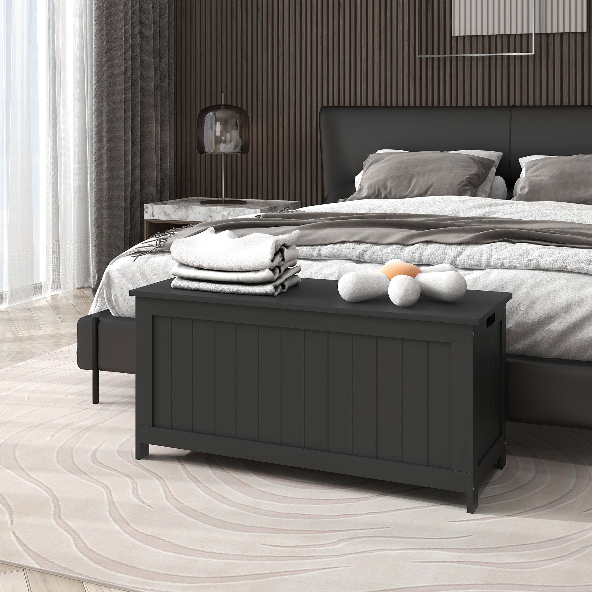 Rangement spacieux et polyvalent : ce coffre de rangement noir offre un grand espace intérieur parfait pour organiser vos couvertures, livres, jouets ou accessoires du quotidien. Sa conception pratique en fait un choix idéal pour le salon, la chambre ou l’entrée.
