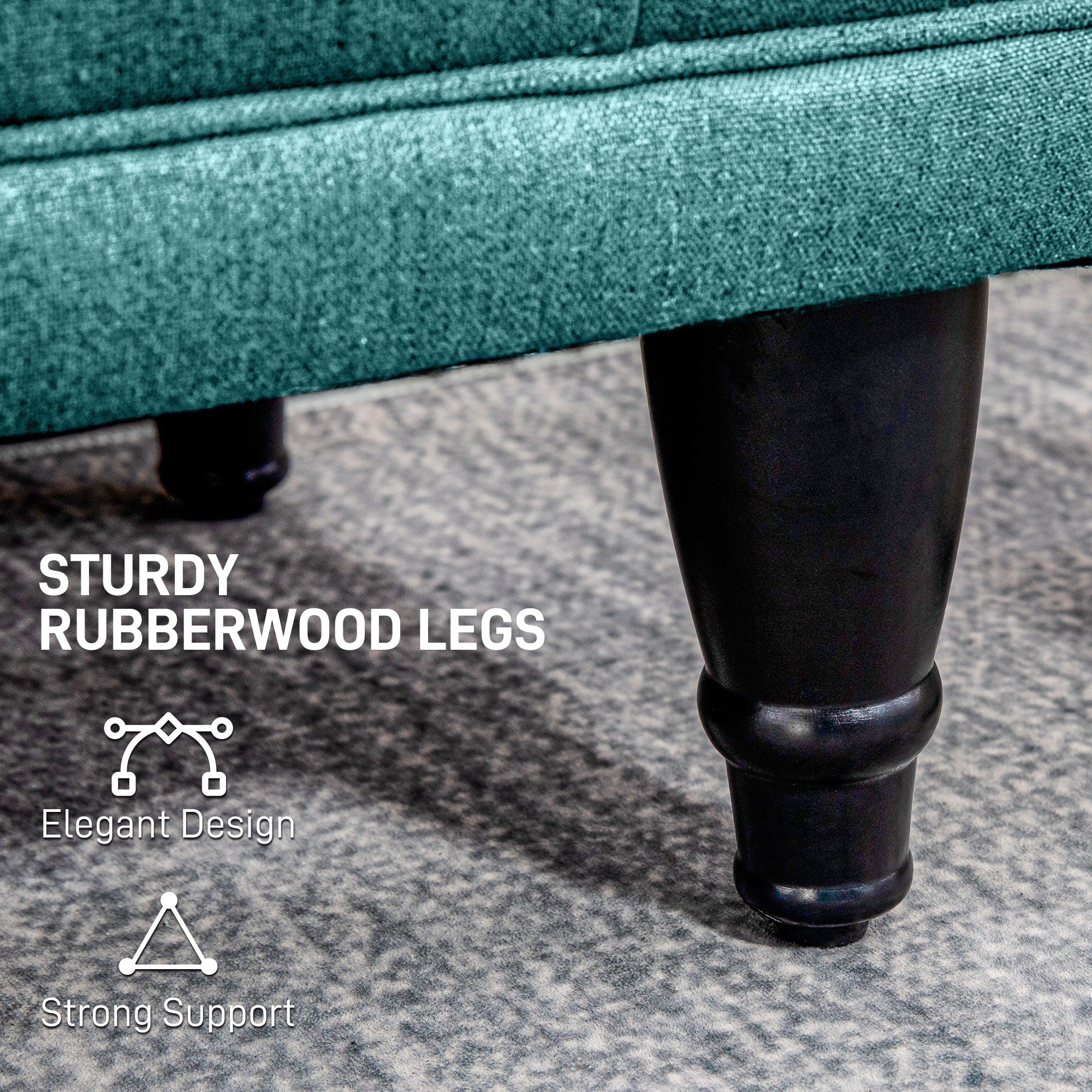 Banc ottoman de rangement vert – Tissu aspect lin, assise capitonnée et pieds en bois dur