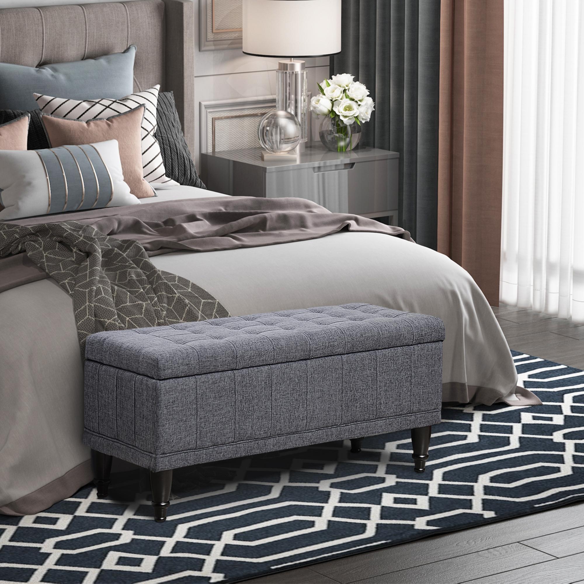 Banc ottoman de rangement gris foncé – Élégance capitonnée et grand espace dissimulé