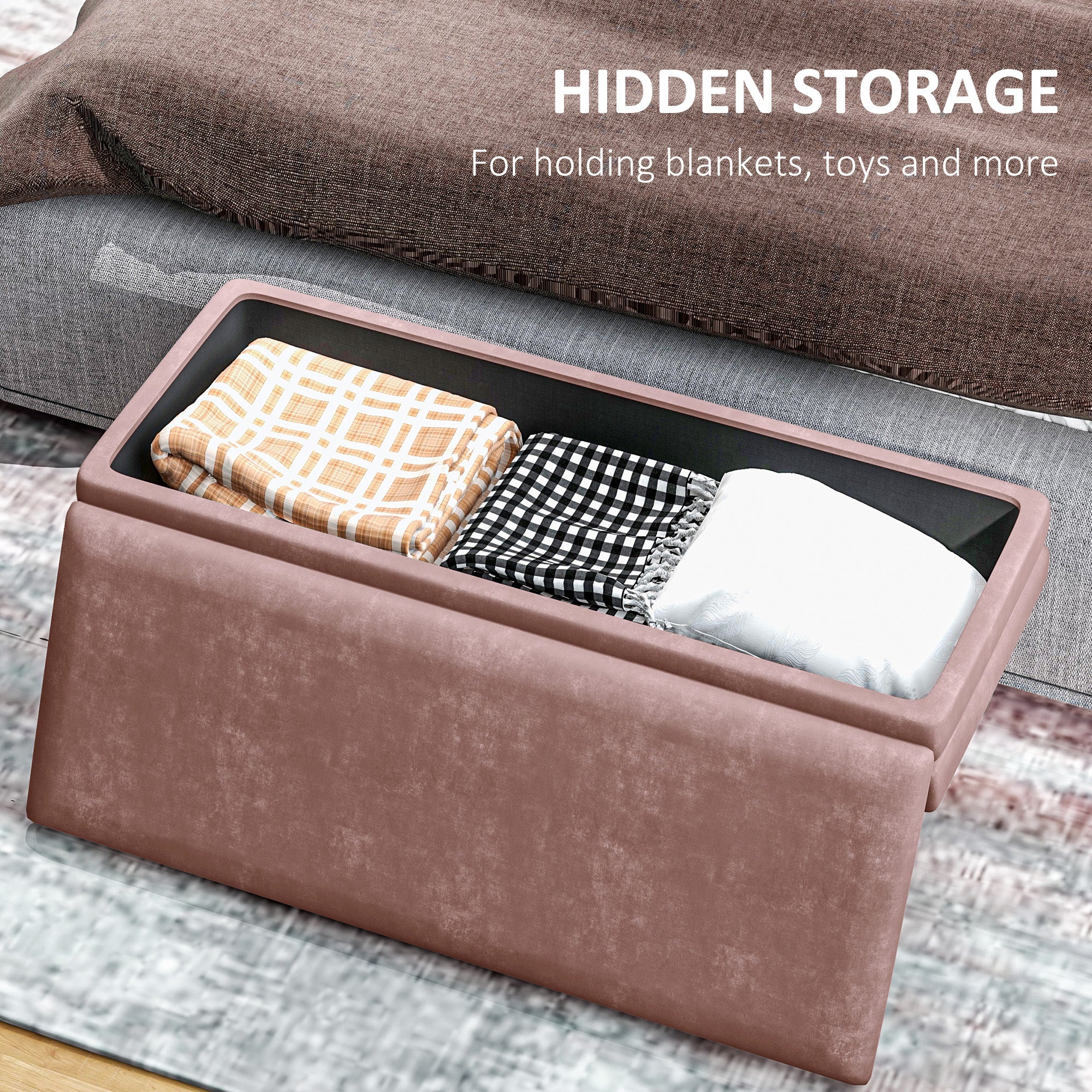 Banc ottoman de rangement rose – Velours doux avec pieds dorés et assise rembourrée