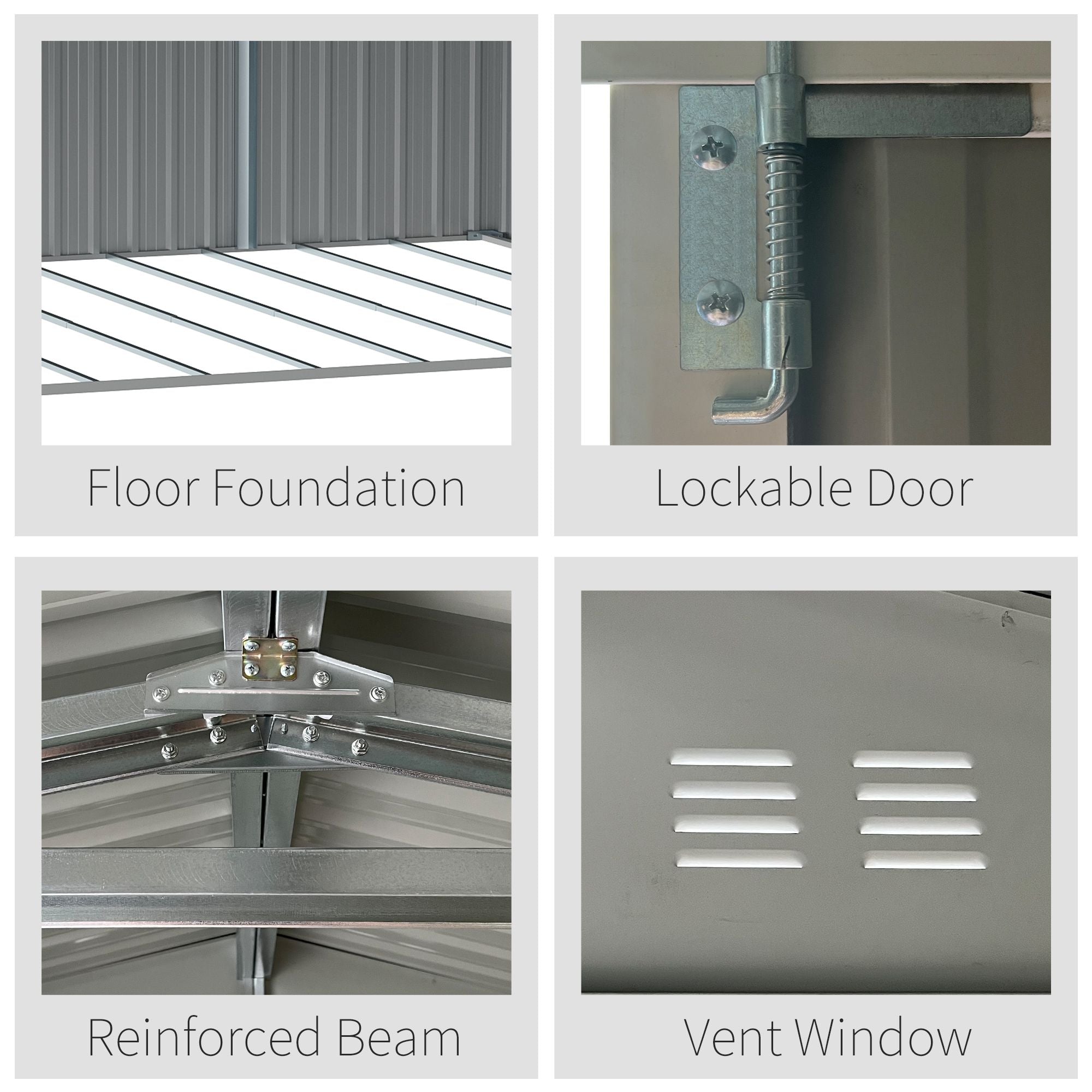 - Structure en acier robuste : Fabriqué en acier galvanisé, cet abri de jardin est conçu pour résister à la pluie, au vent et aux intempéries. Sa finition résistante à la rouille et à l'eau assure une durabilité et une protection durables, saison après saison.