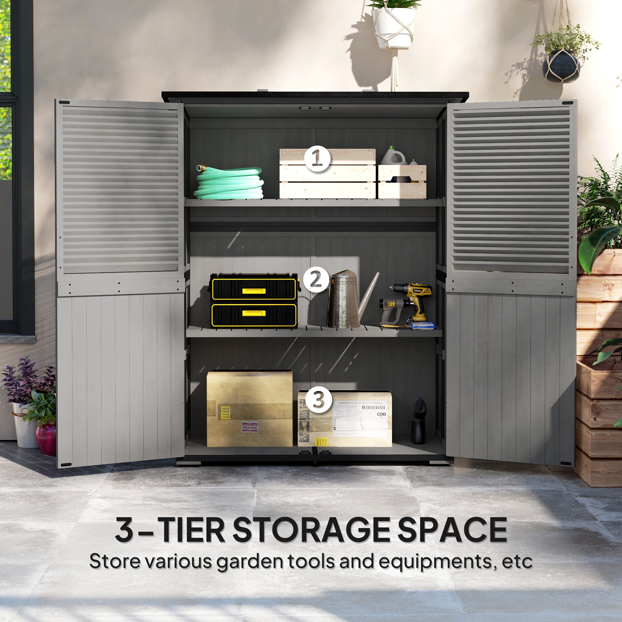 - Ventilation et sécurité renforcées : Dotée d'élégantes portes à volets, cette armoire extérieure ajoute du charme à votre jardin et assure une excellente circulation d'air, garantissant que vos objets restent au sec. Un loquet sécurisé protège vos outils et vous offre une tranquillité d'esprit.