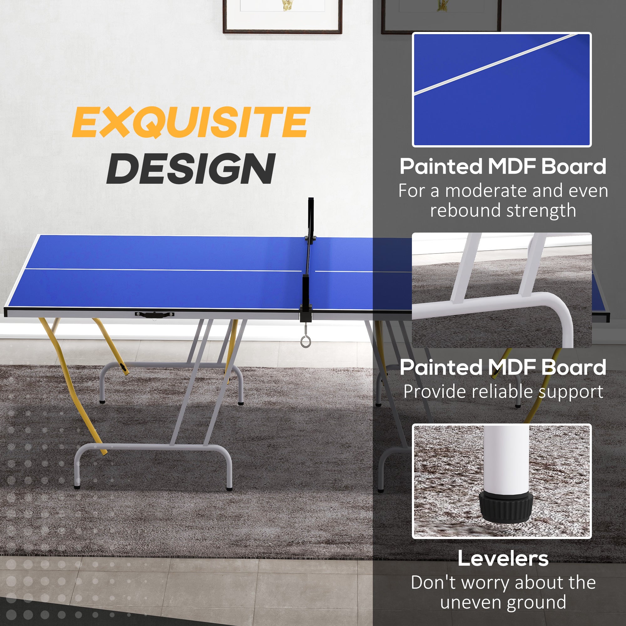 - Format compact : Chaque moitié peut être pliée séparément, réduisant considérablement l’espace de rangement par rapport aux tables de ping-pong pliantes traditionnelles. Un choix malin pour les amateurs disposant de peu d’espace.