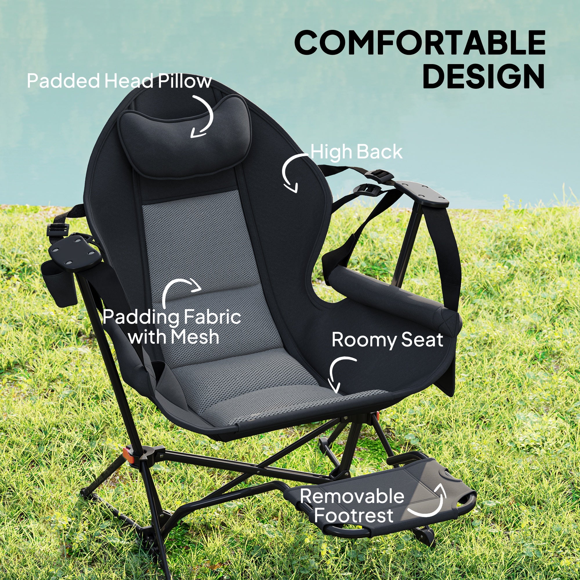 - Confortable : la chaise hamac portable est dotée d'un tissu rembourré avec maille pour la respirabilité et d'un oreiller rembourré pour le soutien de la tête, d'un dossier haut, d'une zone d'assise spacieuse pour un mouvement sans restriction et d'un repose-pieds amovible pour soutenir et soulager tout votre corps.