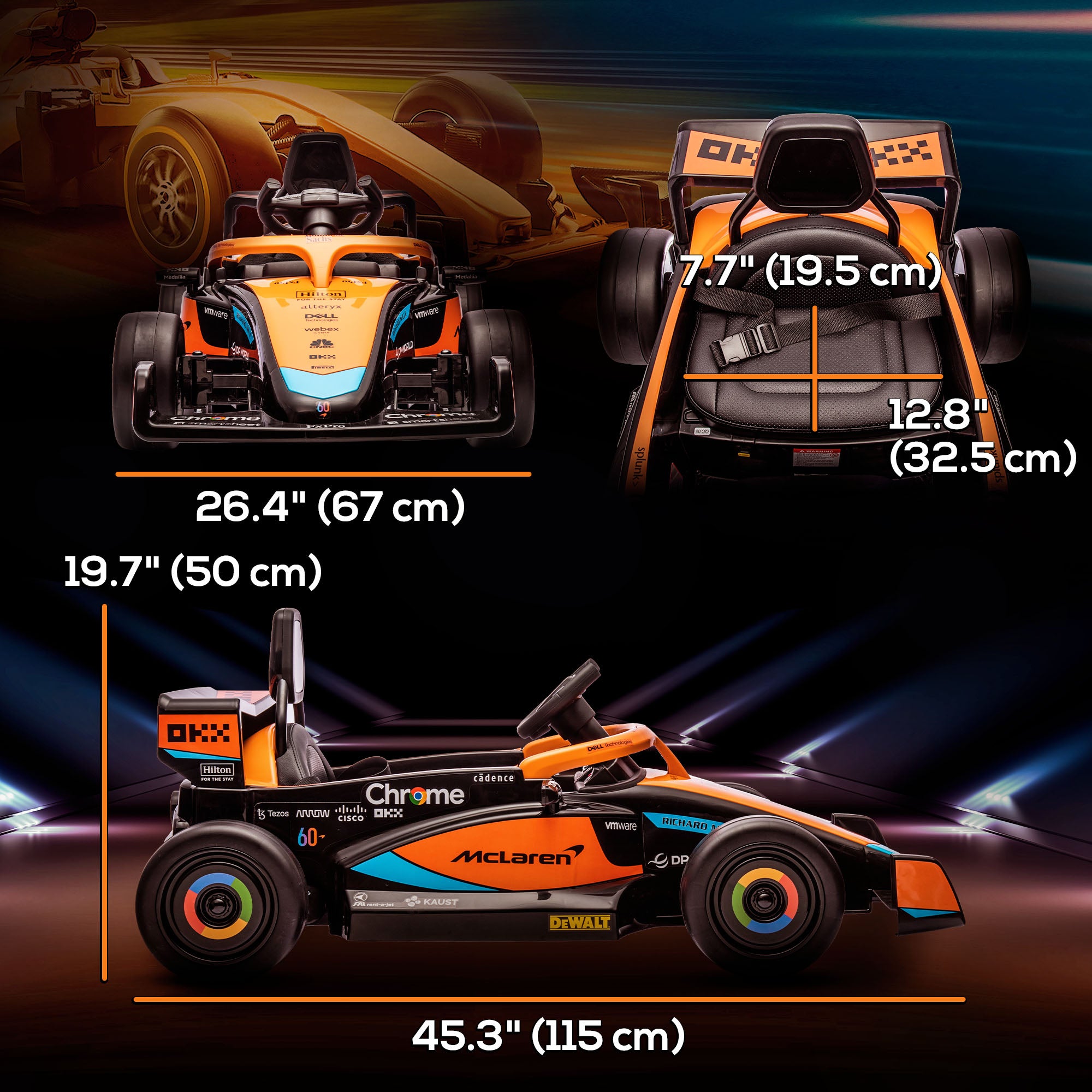 - Informations sur la voiture électrique pour enfants : Dimensions hors tout : 45,3"L x 26,4"l x 19,7"H (115L x 67W x 50H cm). Siège : 12,8"L x 7,7"l x 5,3"H (32,5L x 19,5W x 13,5H cm). Roues : Φ8,7" (Φ22 cm). Âge qualifié/recommandé : 3-5 ans. Qualification : SOR. Assemblage requis. REMARQUE : 2 piles 1,5 VAA requises pour la télécommande non incluses.