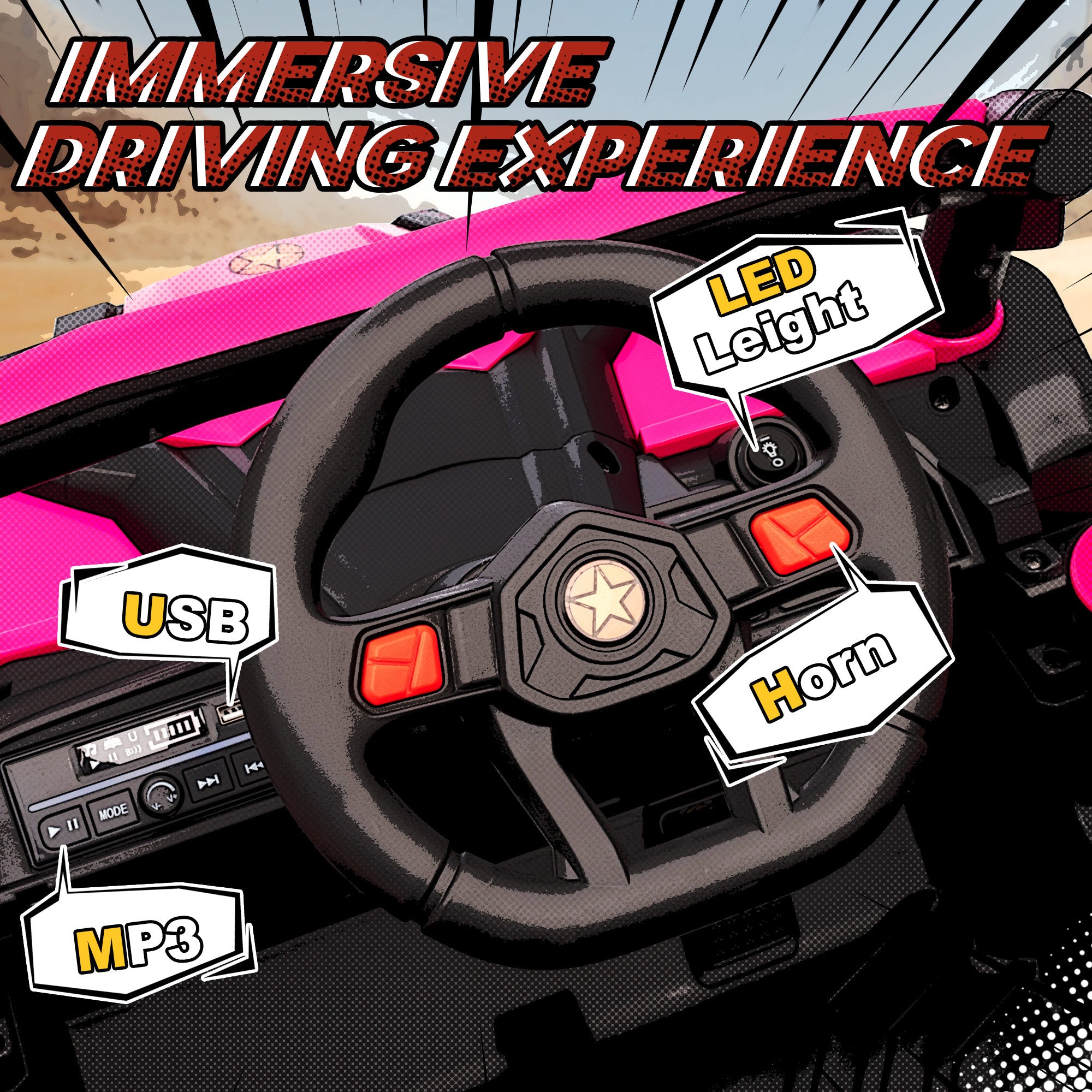 Design réaliste et pratique : Inspirée des UTV, cette voiture se distingue par son look attrayant et robuste. Ses vitesses réglables en manuel ou à distance assurent une expérience adaptée aux jeunes conducteurs, tout en laissant aux parents le contrôle nécessaire.