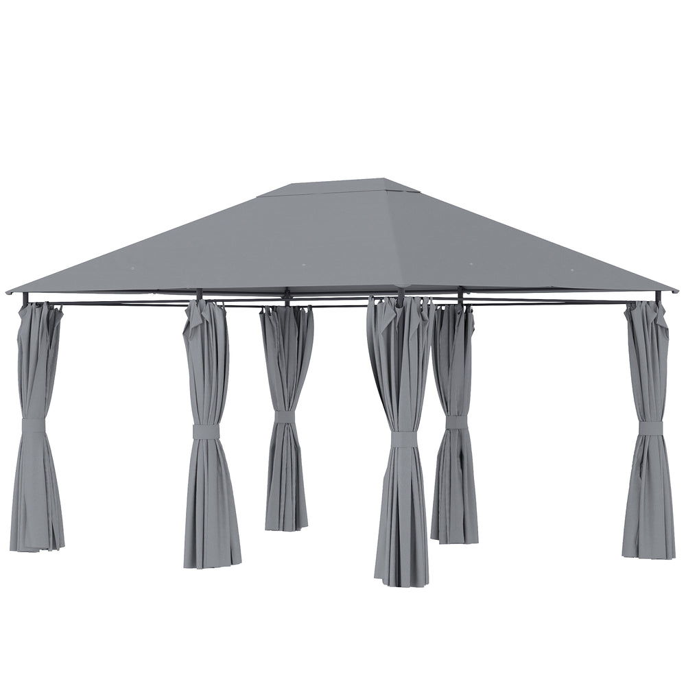 10'x13' Two-Tier Steel Covered Gazebo with Curtain, Gray