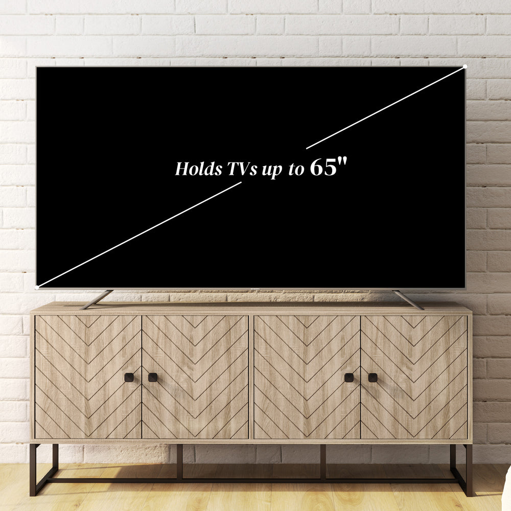 TV stand for TVs up to 80 inches with storage shelf and steel frame