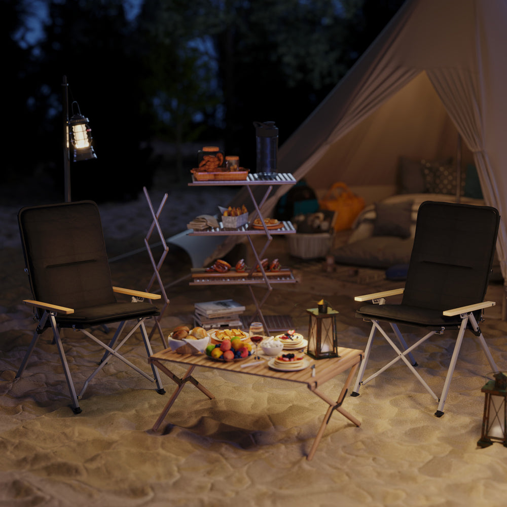 Set of 2 Camping Chairs with Padded Seat and Bag, High Back Outdoor Recliner, Black