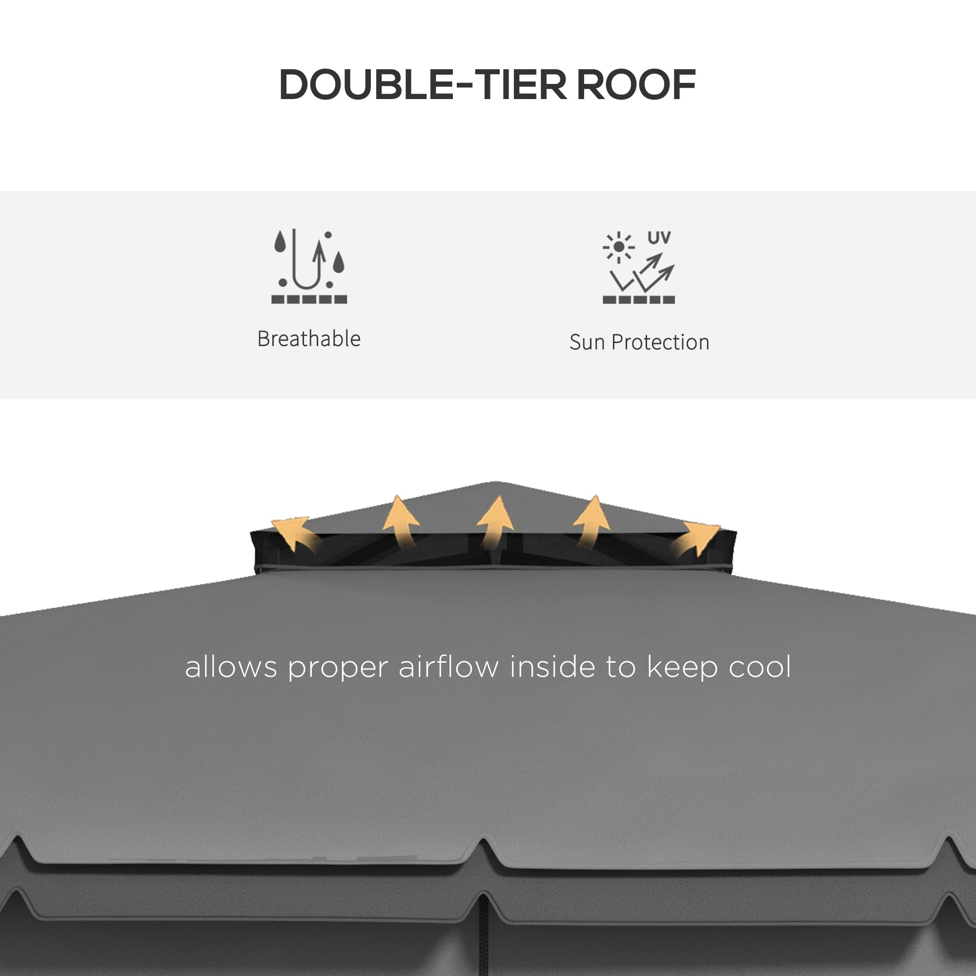 Transform your outdoor space with the [BRAND NAME] backyard gazebo, which combines style, comfort, and durability. The spacious 10' x 10' frame offers ample room for gatherings while standing strong against the elements. The 2-tier polyester canopy of the deck gazebo provides shade and promotes airflow, keeping you cool even on hot days. Privacy curtains with built-in netting create a secure retreat, shielding you from bugs and unwanted distractions.