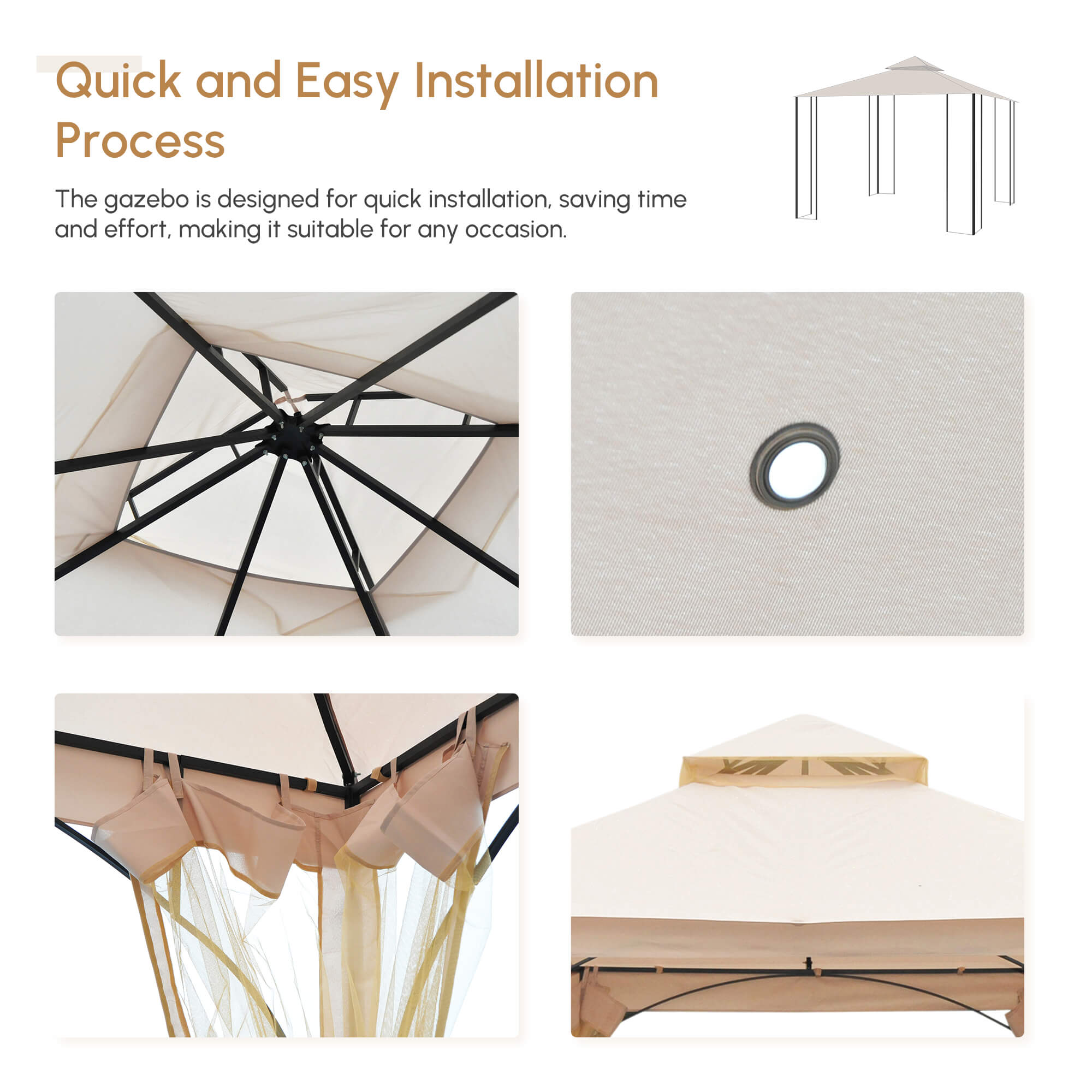 - • Equipped with 8 ground stakes to make the gazebo firm and sturdy