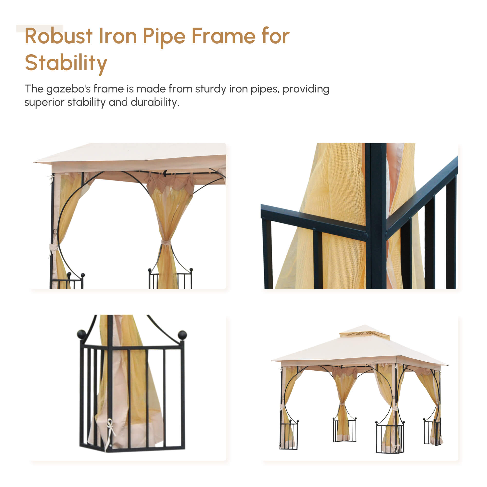 - • 10x10 gazebo with mesh side walls, ideal for patio, backyard, garden, park, etc.