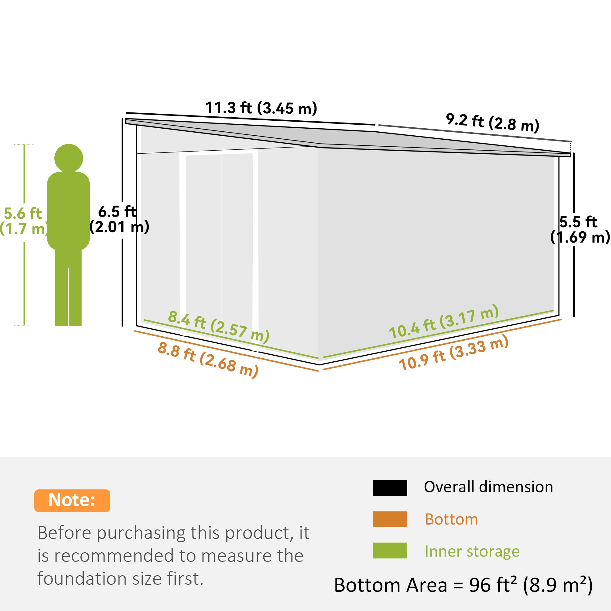 - Floor area: 96 sq ft