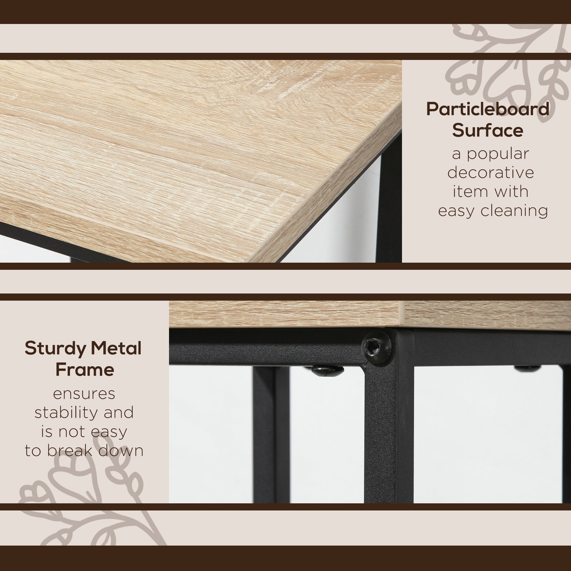 This plant stand set brings a touch of industrial elegance to your interior thanks to its black metal frame and wood-effect shelves. Its clean design showcases your plants while blending seamlessly into the living room, conservatory, or any other living space.