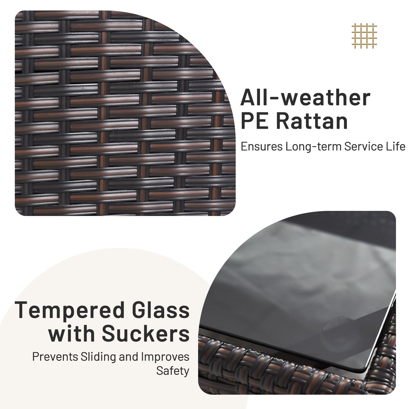 The sturdy steel frame and hand-woven PE rattan ensure durability and excellent weather resistance. The coffee table features a removable, heat- and impact-resistant tempered glass top, securely held in place for safe use.