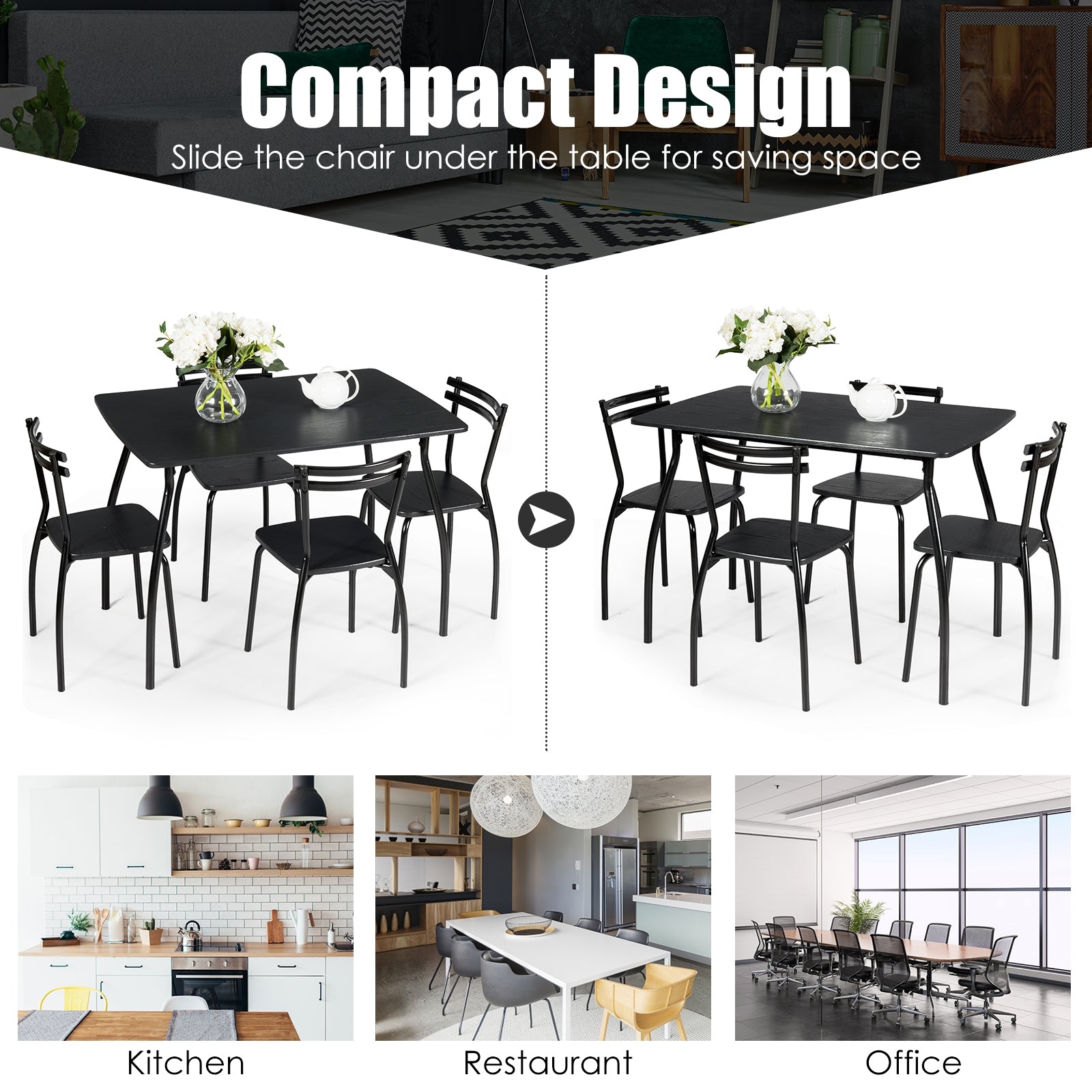 Comfort and design: This minimalist dining set stands out with its clean lines and modern look. The black MDF tabletop creates a simple yet elegant appearance, perfect for establishing a warm and inviting atmosphere in the kitchen or dining room.