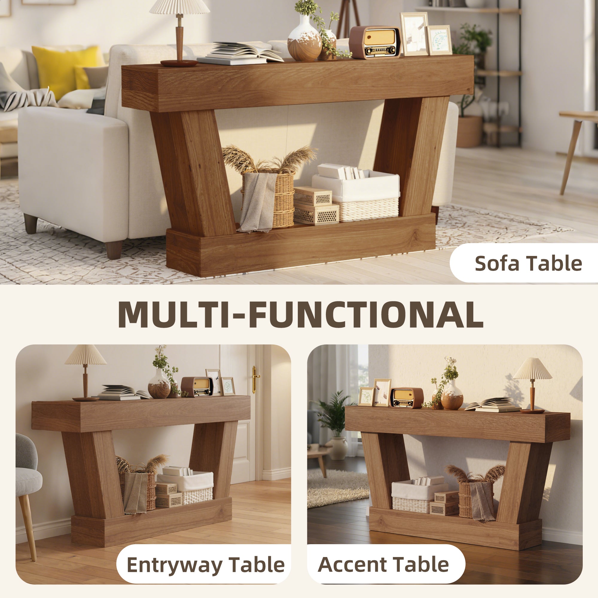 Comfort and design: This console table brings irresistible vintage charm to your entryway or living room thanks to its aged dark brown finish. Its double pillars and crossbars give it an elegant architectural silhouette, adding a refined decorative touch that instantly enhances your space.