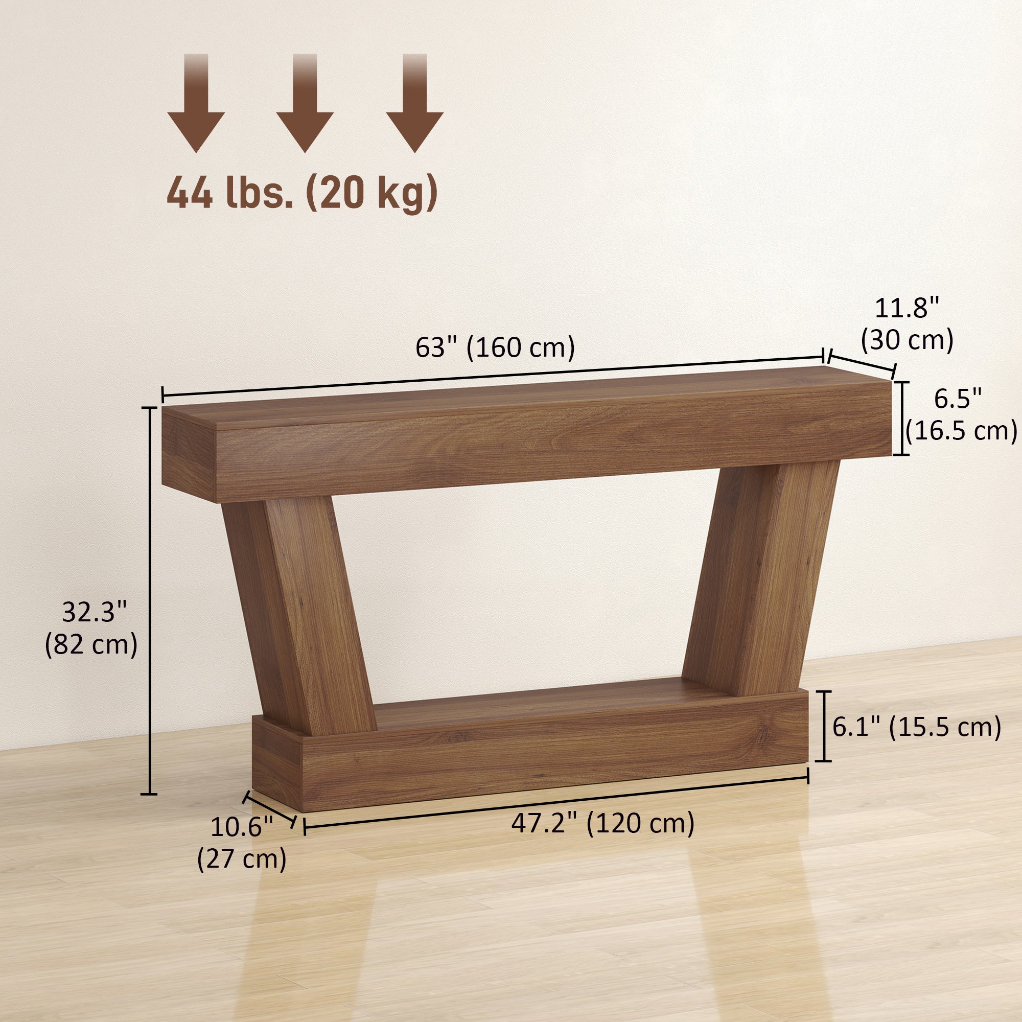 - Overall dimensions: 63" L x 11.8" D x 32.3" H (160 x 30 x 82 cm)