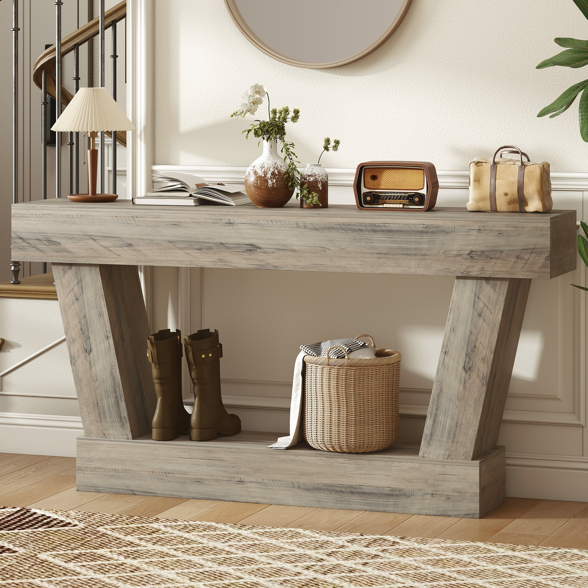 Versatile use: Its wide top surface and lower shelf offer organized storage for your decorations, picture frames, baskets, or everyday essentials. Ideal as an entryway or living room table, it blends easily with various decors while enhancing the room's functionality.
